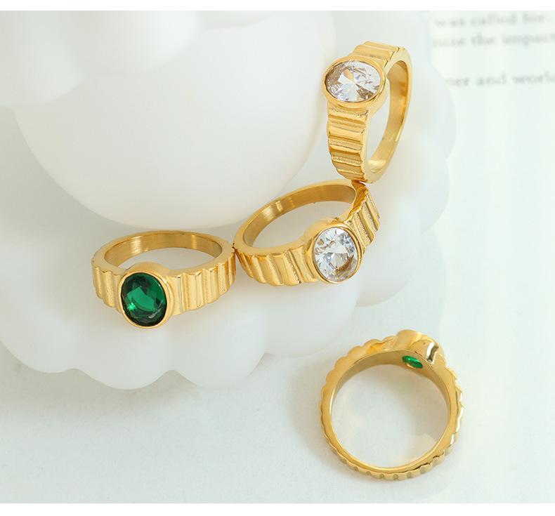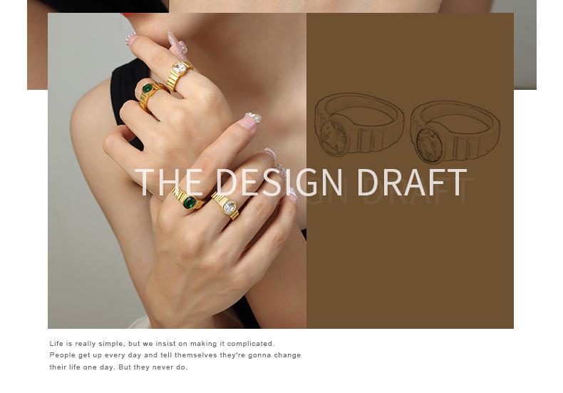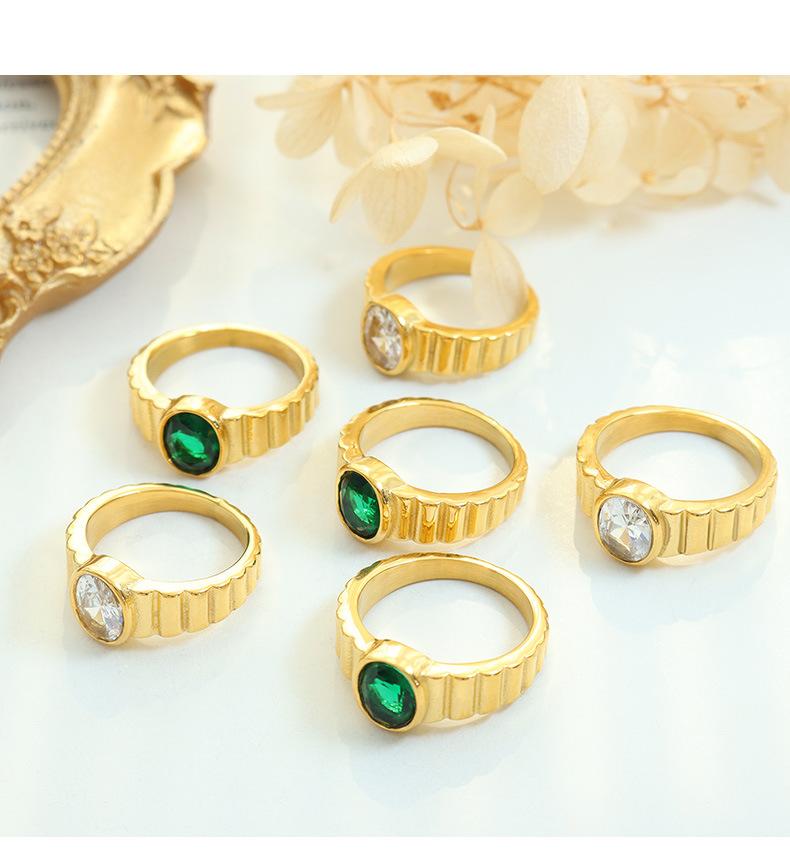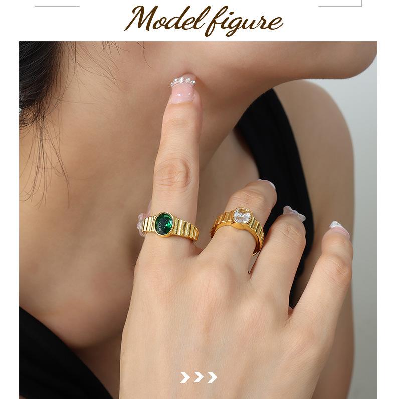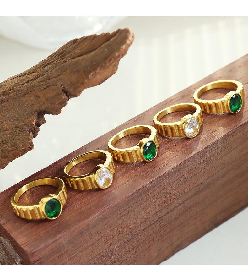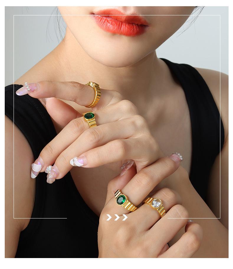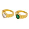 Anillo Punk Transfronterizo Estilo Europeo y Americano Combinable Moderno Circonita Verde Rayada Diseño Personalizado Acero Titanio Galvanizado Anillo para Mujer