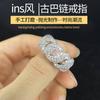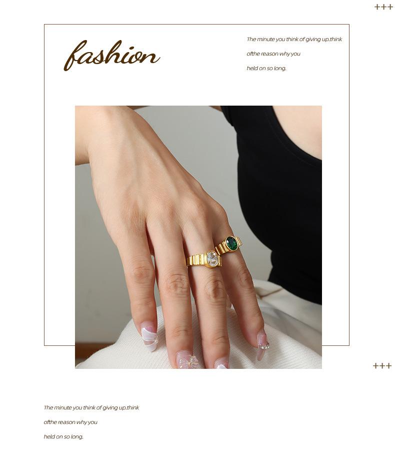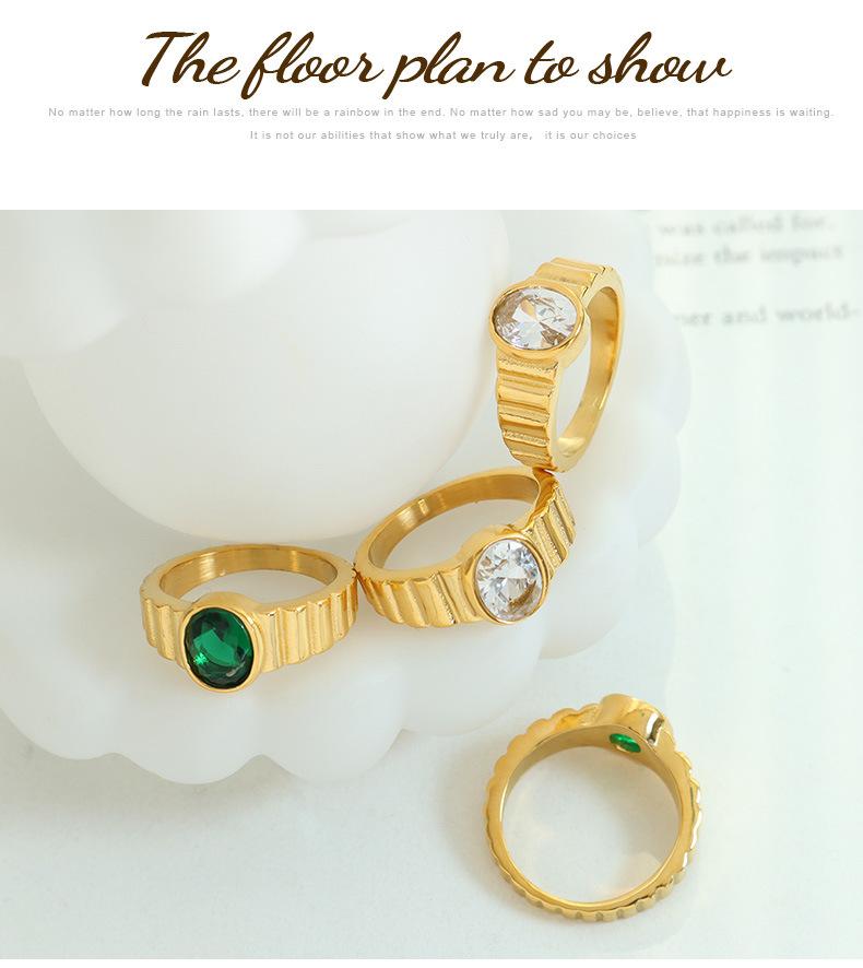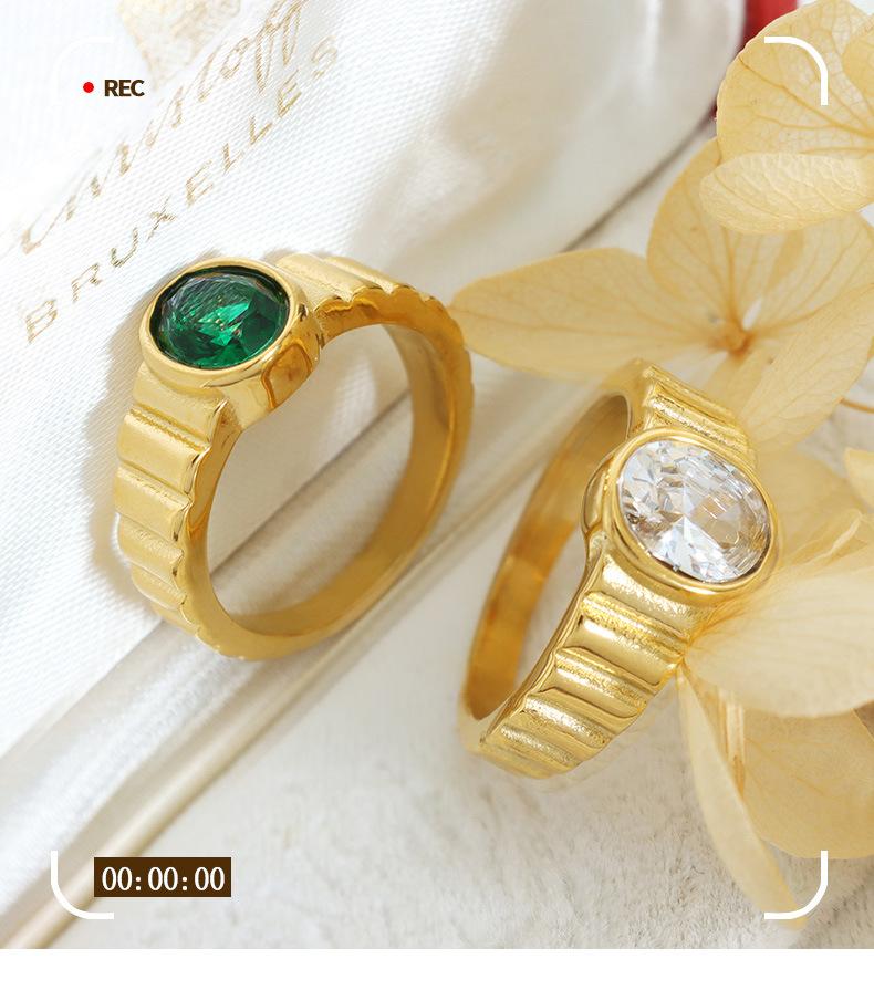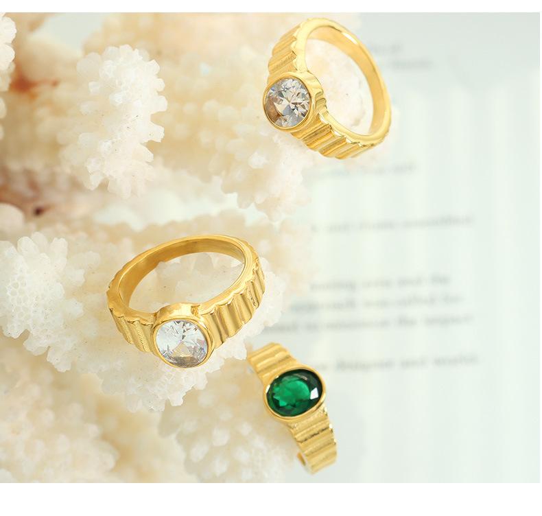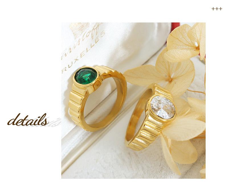 Anillo Punk Transfronterizo Estilo Europeo y Americano Combinable Moderno Circonita Verde Rayada Diseño Personalizado Acero Titanio Galvanizado Anillo para Mujer