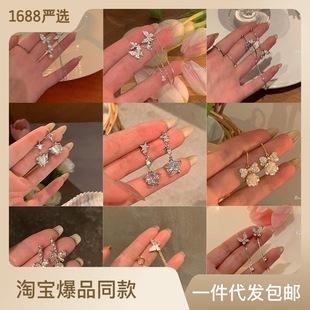 Anillo de circón con temperamento coreano para mujer, anillo de dedo índice de perla abierto simple, ajustable, joyería de mano personalizada de moda al por mayor