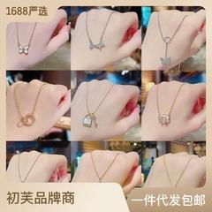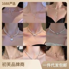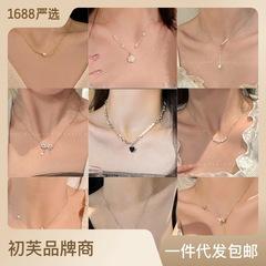 Collar de acero de titanio de lujo ligero de alta gama para mujer, diseño de nicho, cadena de clavícula de perlas para chica atractiva, accesorios versátiles de moda al por mayor