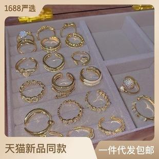Anillo abierto de circonita micropavimentada estilo Ins para mujer, anillo de ojo de gato personalizado de alta gama, temperamento retro, joyería de mano al por mayor