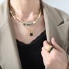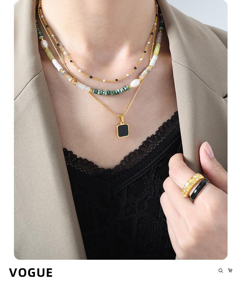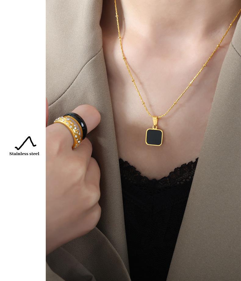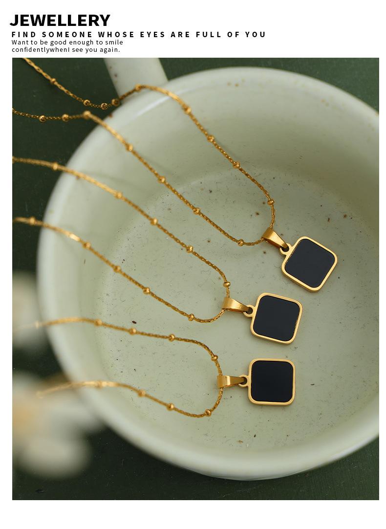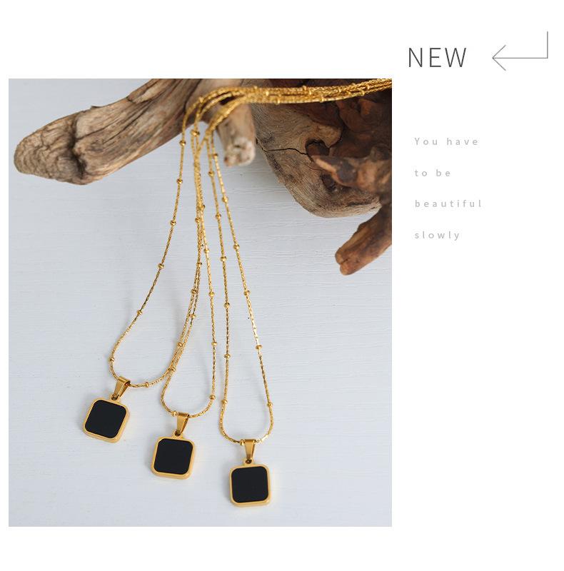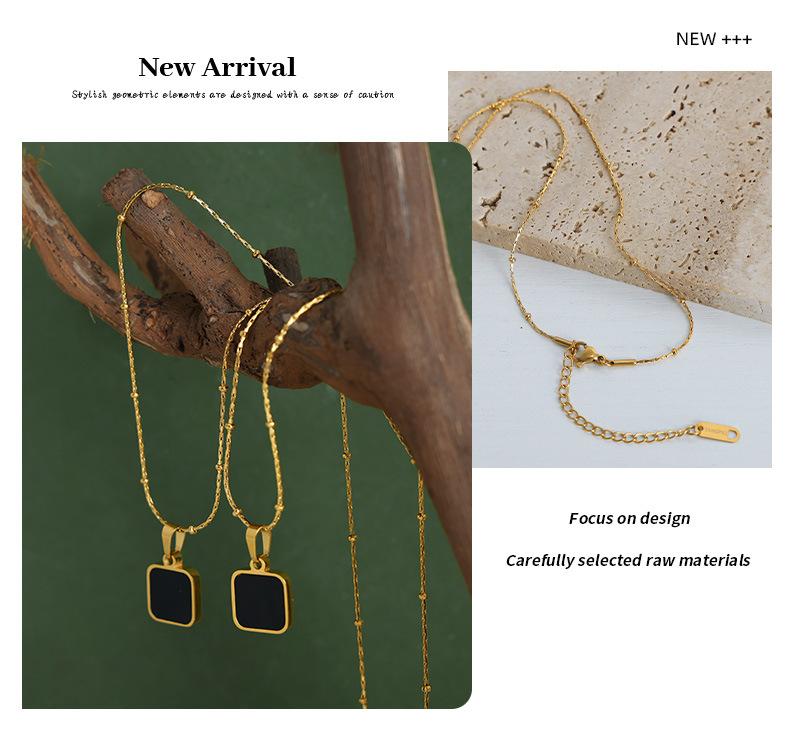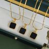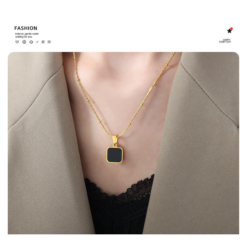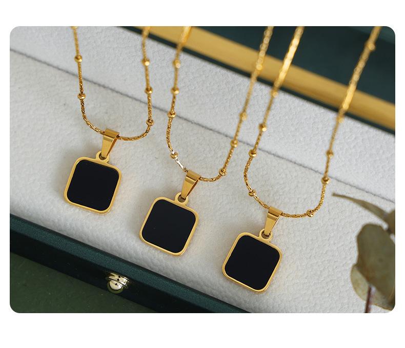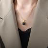 Colgante de cadena de clavícula con ágata negra de acero de titanio cuadrado de diseño de nicho simple de alta calidad de estilo francés nuevo, joyería a juego para mujeres