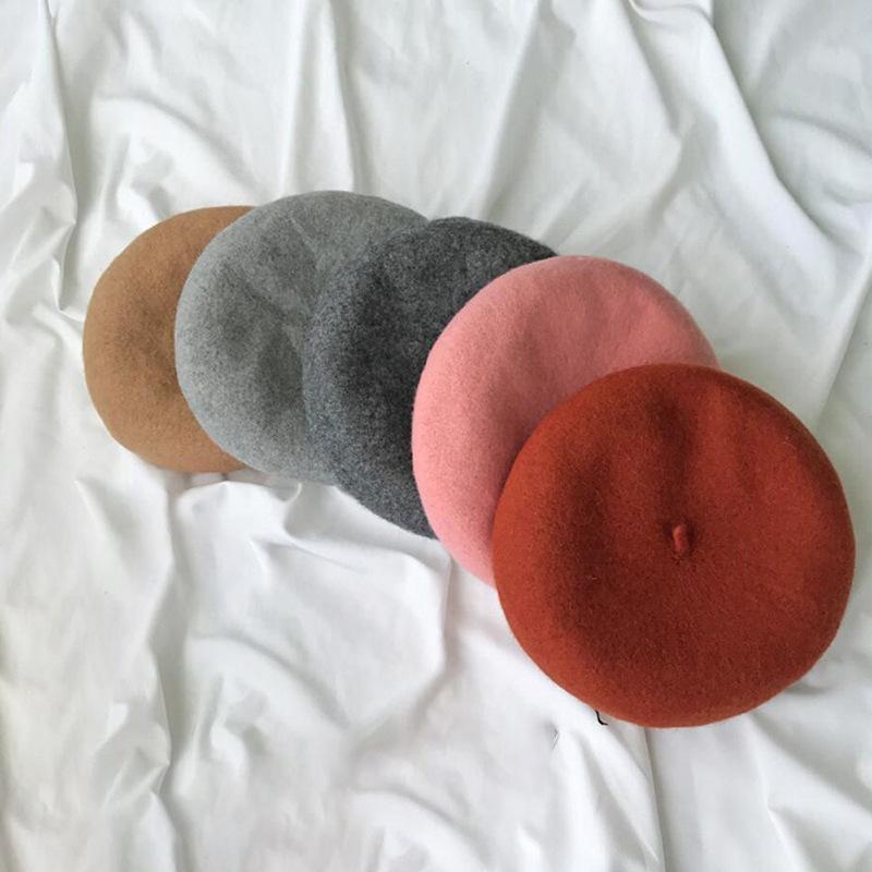 Boina de Invierno/Otoño estilo coreano Morandi Felpa Sombrero de Pintor a la Moda Combinable Estilo Japonés Lana Cálido Sombrero de Vientre