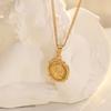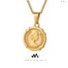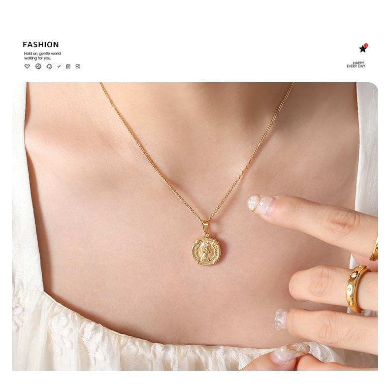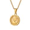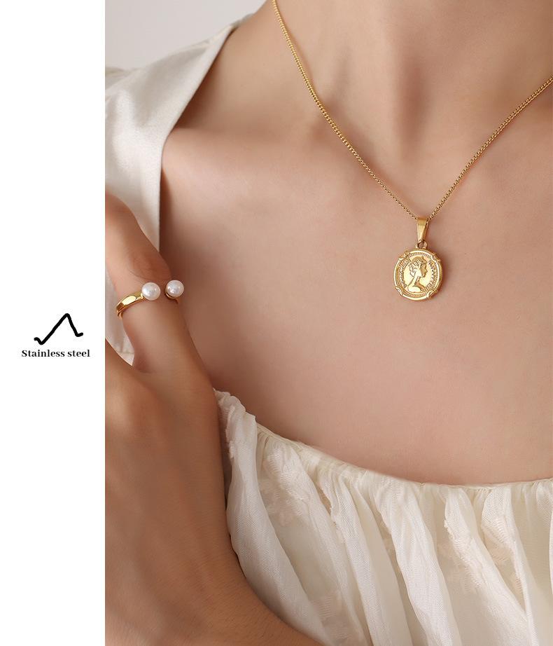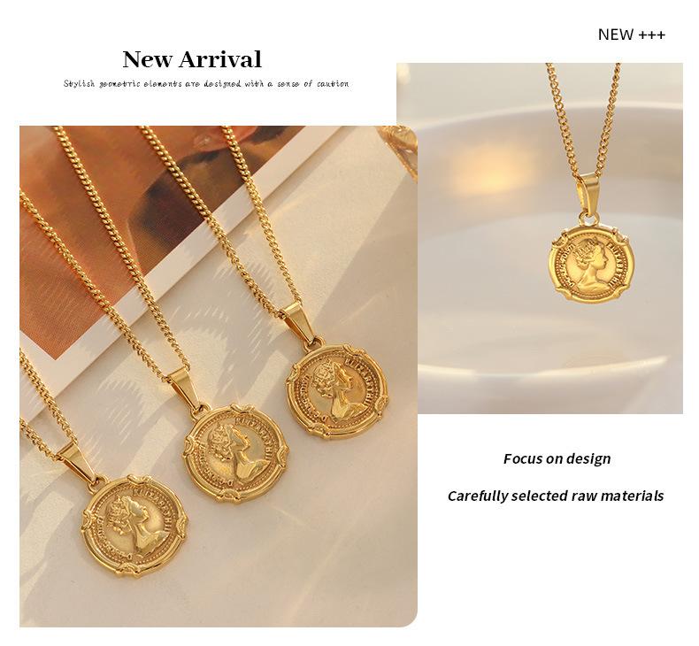 Collar con colgante de cabeza de reina en relieve de marca redonda con diseño de nicho de estilo cortesano francés, accesorios elegantes y modernos de estilo transfronterizo.