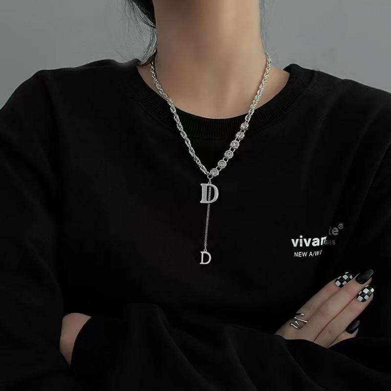 Collar de Acero de Titanio con Letra D de Zirconia de Moda para Mujer, Simple, de Lujo Ligero, Moderno, de Alta Gama, de Lujo Ligero, Otoño e Invierno, Versátil, Cadena de Lana