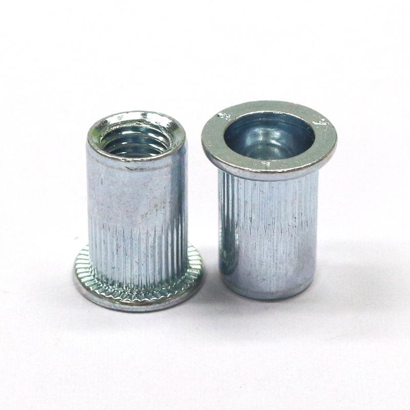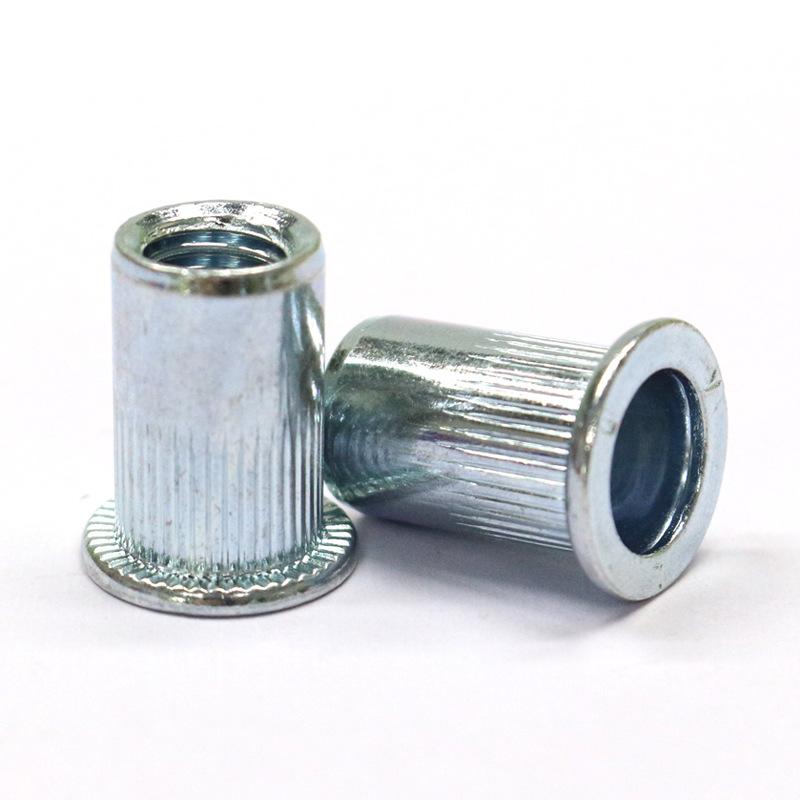 Tuerca Remache de Columna de Cabeza Plana para Agujero Pasante Pre-Fabricada por el Fabricante Acero al Carbono Galvanizado Patrón Vertical Remache de Hierro Tapa de Tracción Tuerca Remache Moleteada