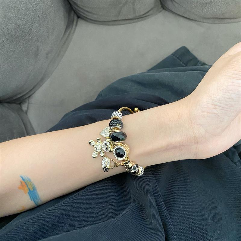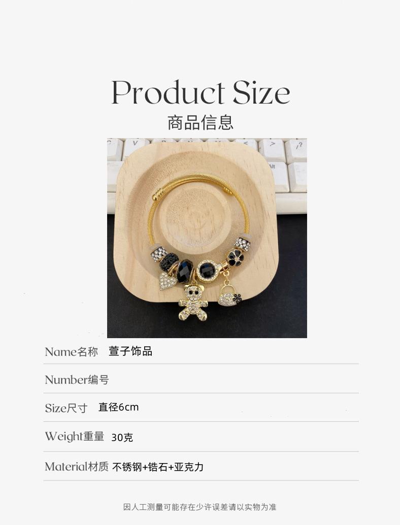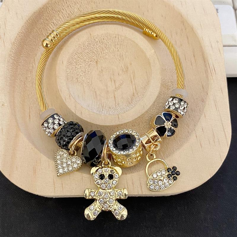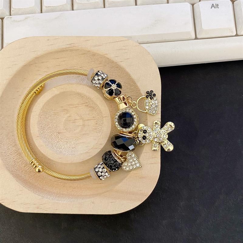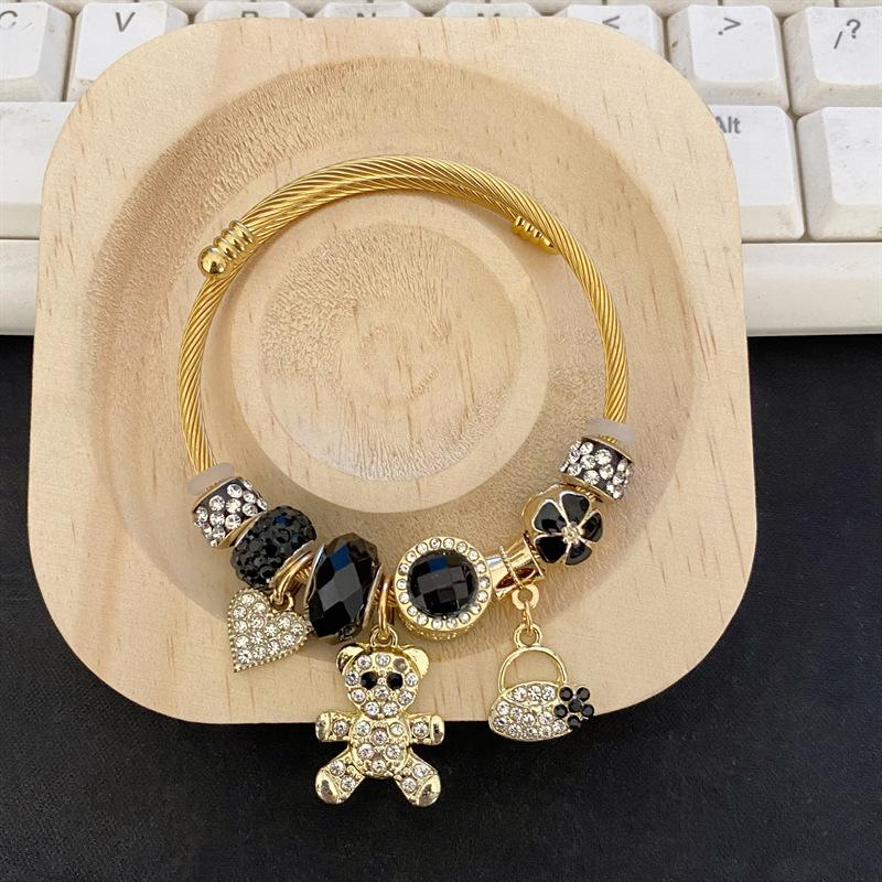 Pulsera de cuentas DIY de estilo Panjia de alta gama, nicho de lujo ligero, totalmente engastada con circonitas, Corazón de Oso, pulsera versátil para mujer