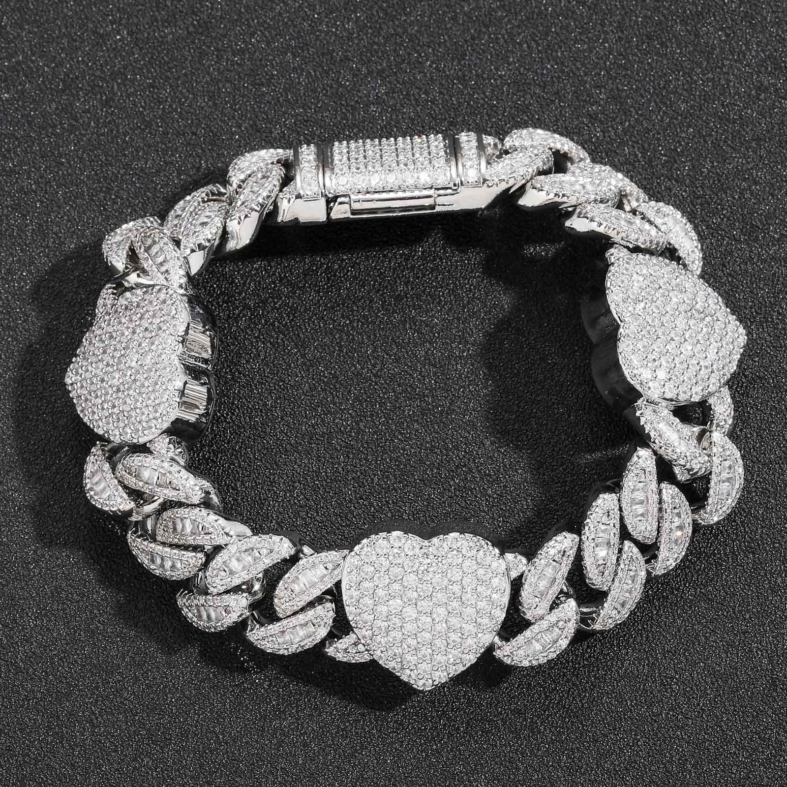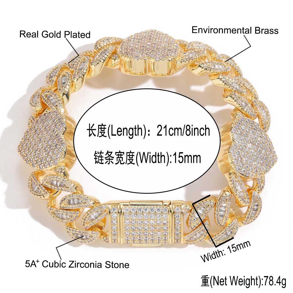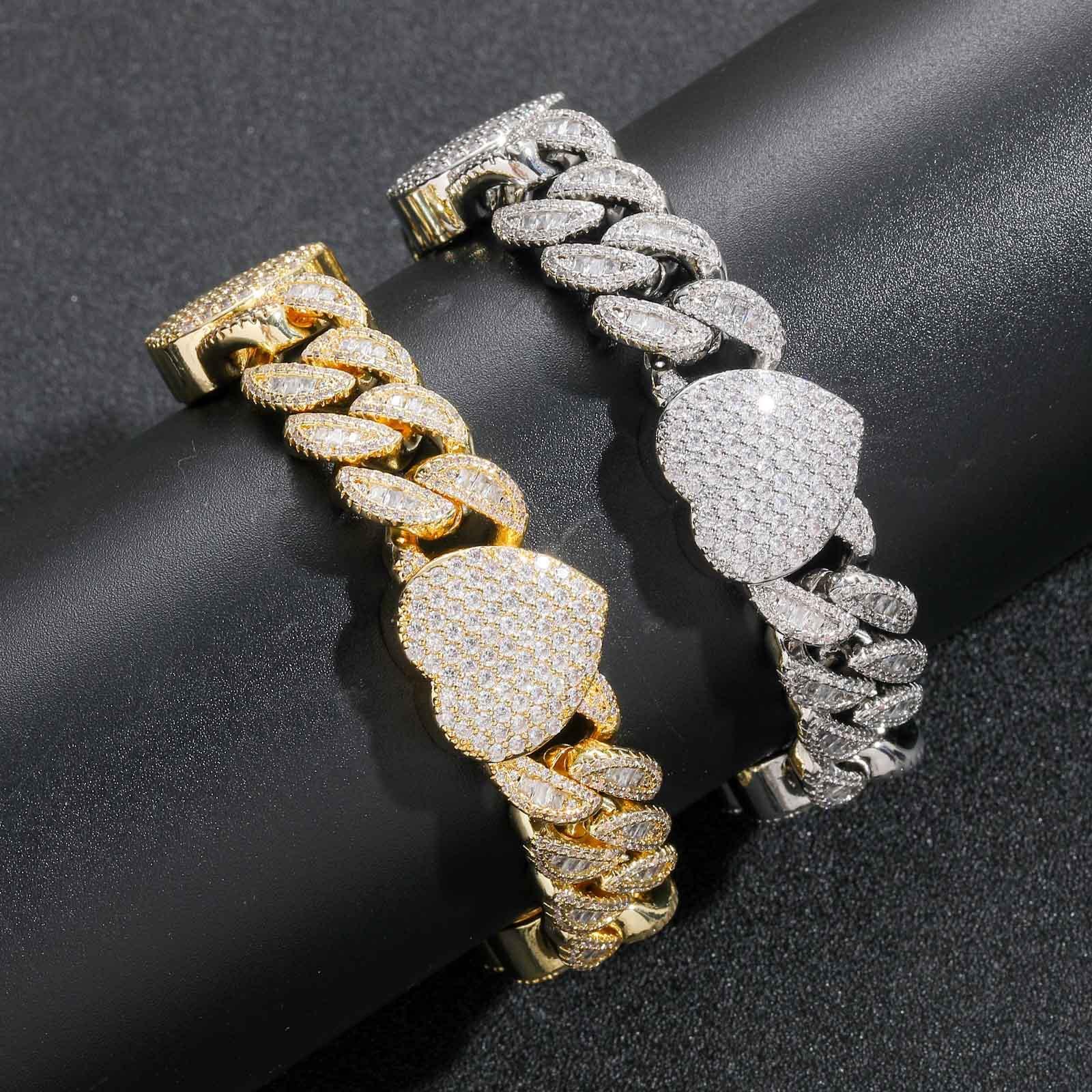 Nueva pulsera transfronteriza europea y americana 15 mm amor cadena cubana T cuadrado circonita diamante completo moderno accesorios hip hop para hombre