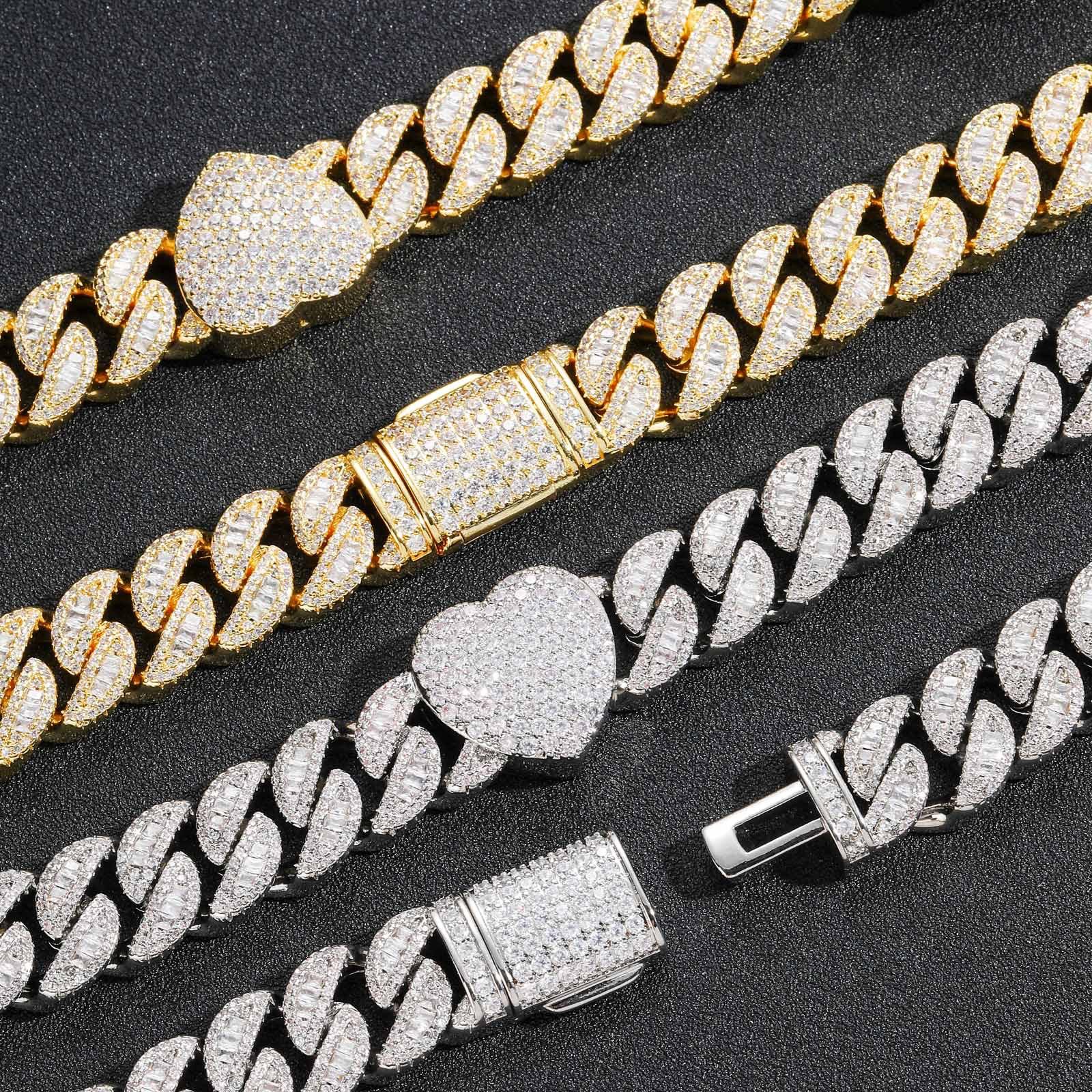 Collar de hip-hop europeo y americano de 20 mm con hebilla de caja y barra de la industria pesada de Miami, cadena cubana llena de circonitas, collar de hip-hop para hombre
