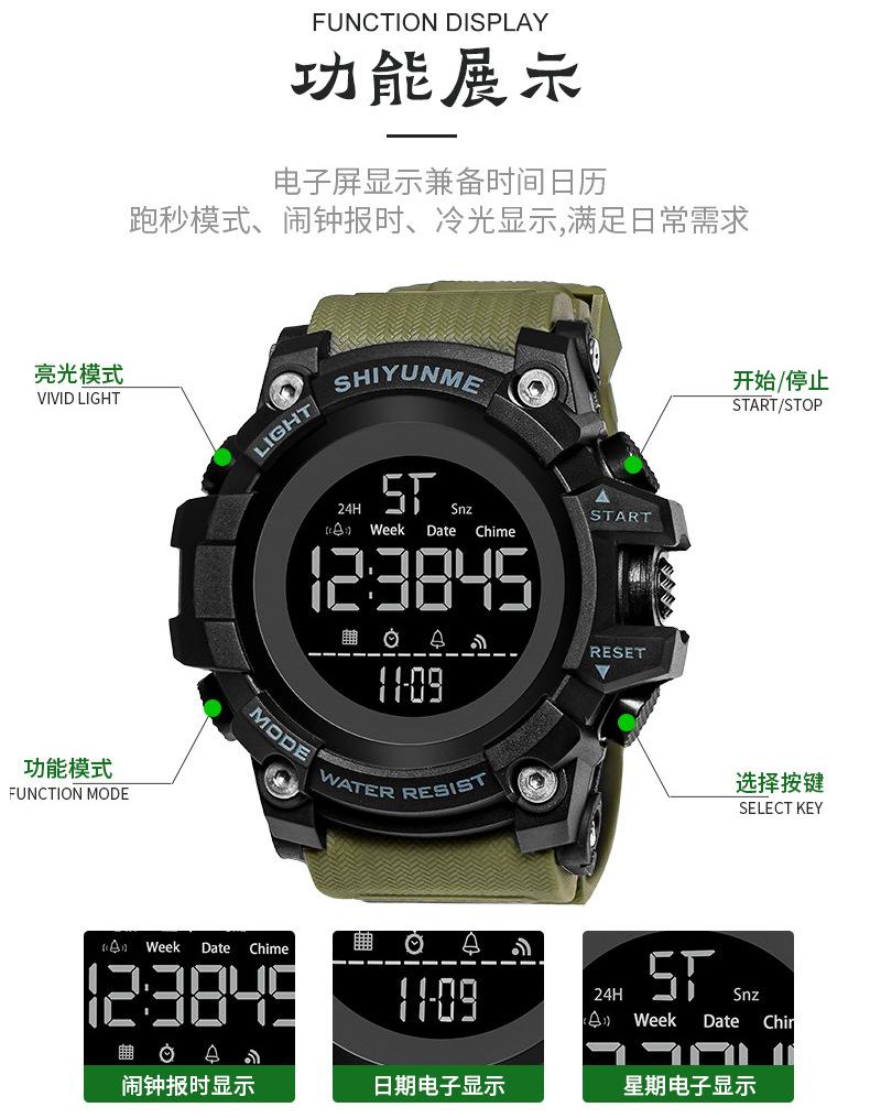 Reloj Deportivo Electrónico Multifuncional Transfronterizo con Pantalla Luminosa Reloj Redondo Creativo Impermeable de Esfera Grande Luminoso Impermeable