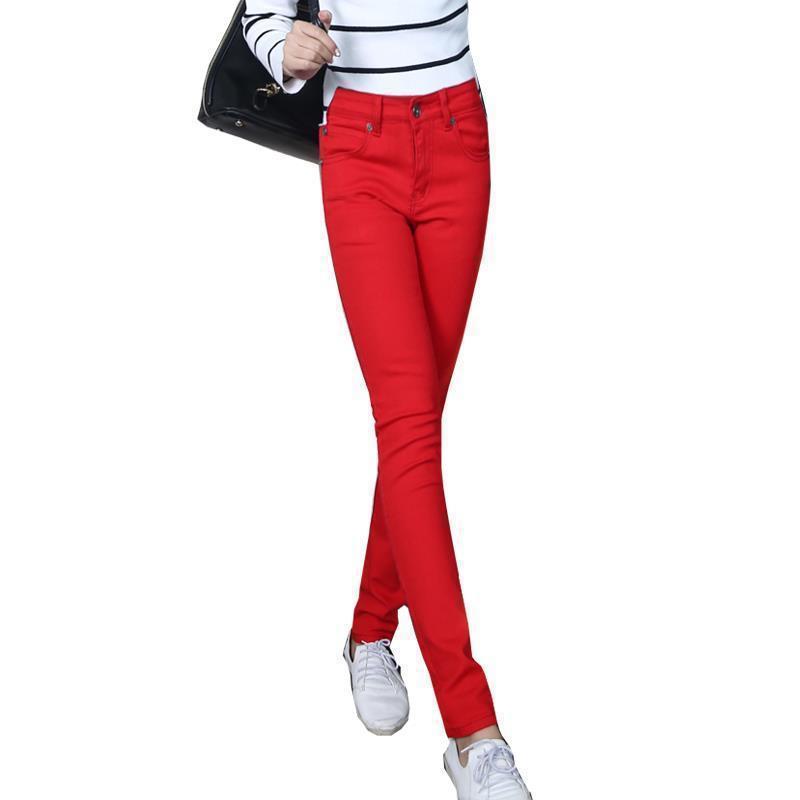 Jeans Rojos Grandes Delgados de Verano 2025 Pantalones de Cintura Alta para Mujer Pantalones de Pierna Pequeña Elásticos Ajustados Pantalones Lápiz Ajustados
