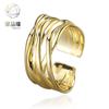 Moda Nacional Nuevo Estilo Chino Moda Personalizado Simple Joyería Diseño con Textura Geométrica Sentido Acero de Titanio Chapado en Oro Anillo de Abertura Ancha