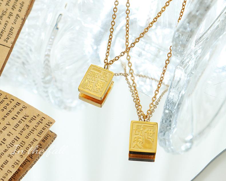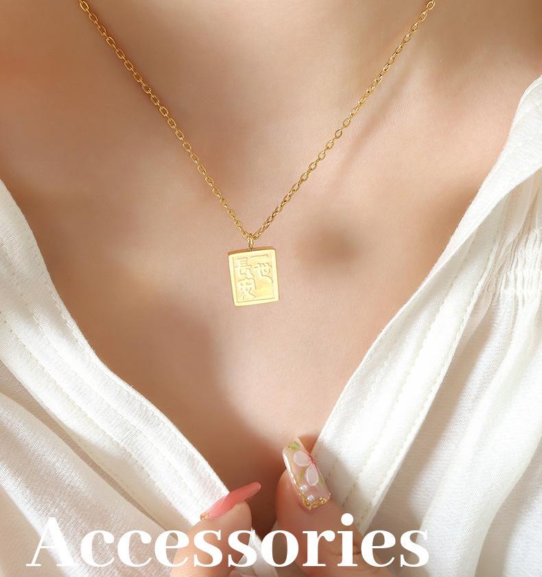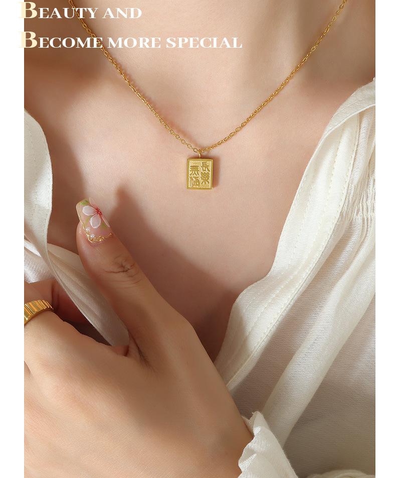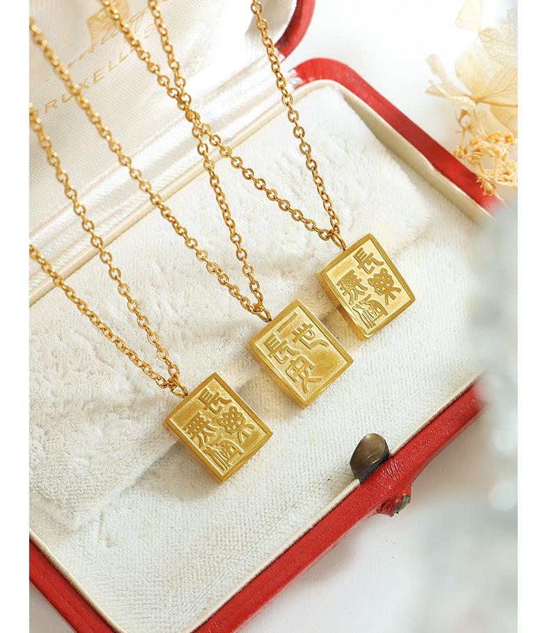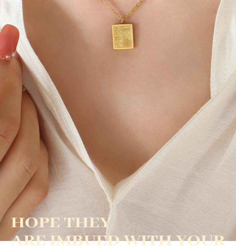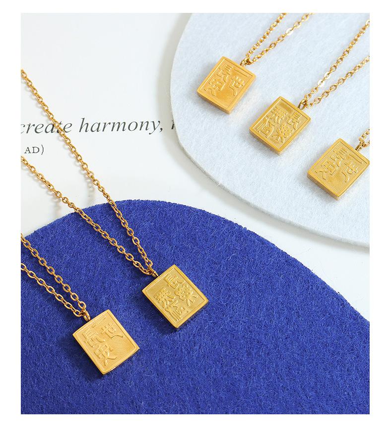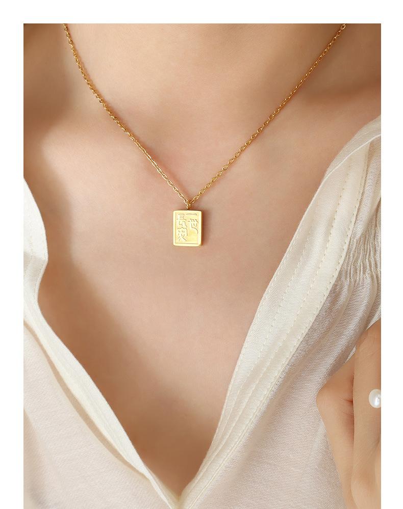 Collar con colgante cuadrado de la marca Gong Tingfeng I Changan, chapado en oro de 18 quilates, de acero de titanio, con personalidad sencilla para mujer, cadena de clavícula P727