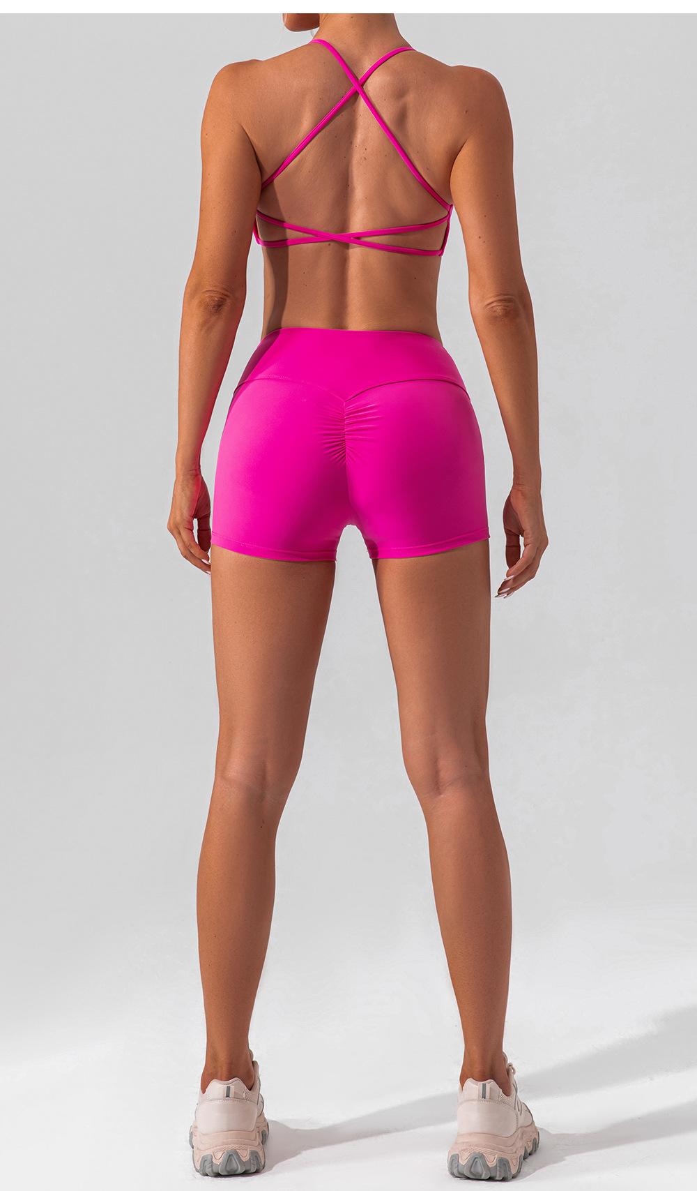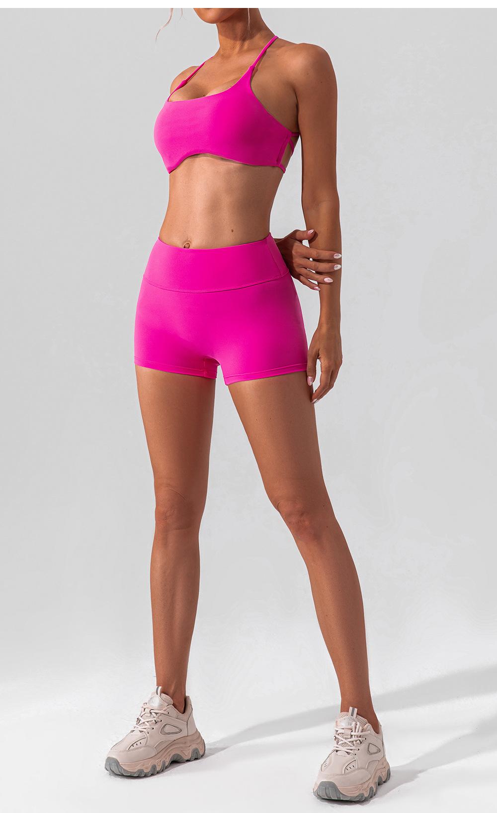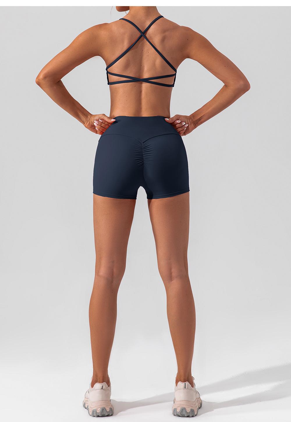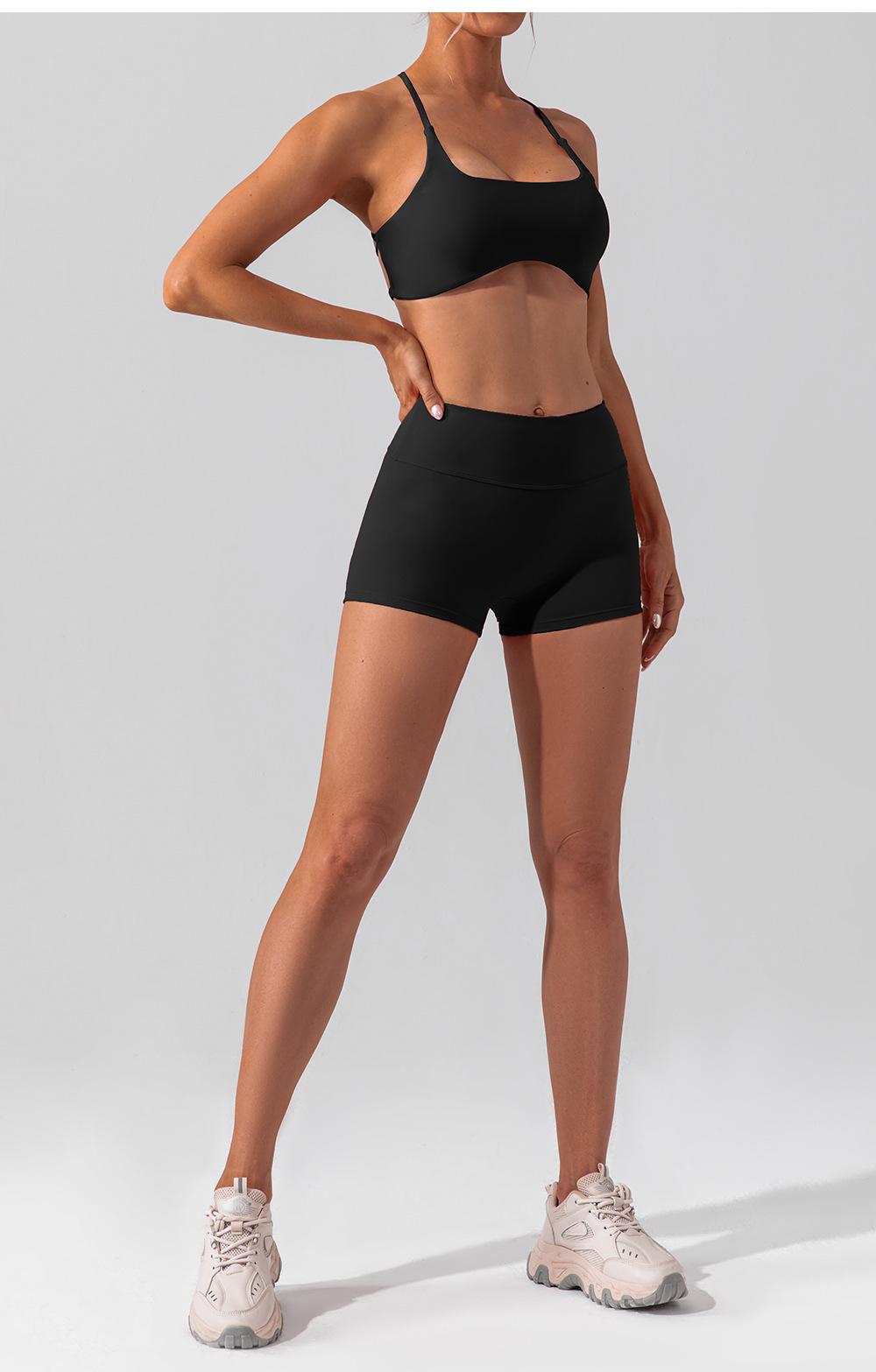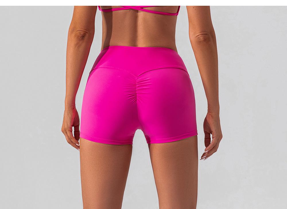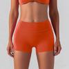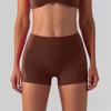 Shorts de fitness de cintura alta transfronterizos europeos y americanos sin línea de vergüenza, pantalones de yoga cepillados de doble cara, shorts deportivos ajustados para realzar la cadera para mujer