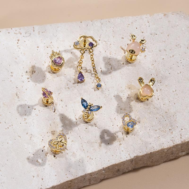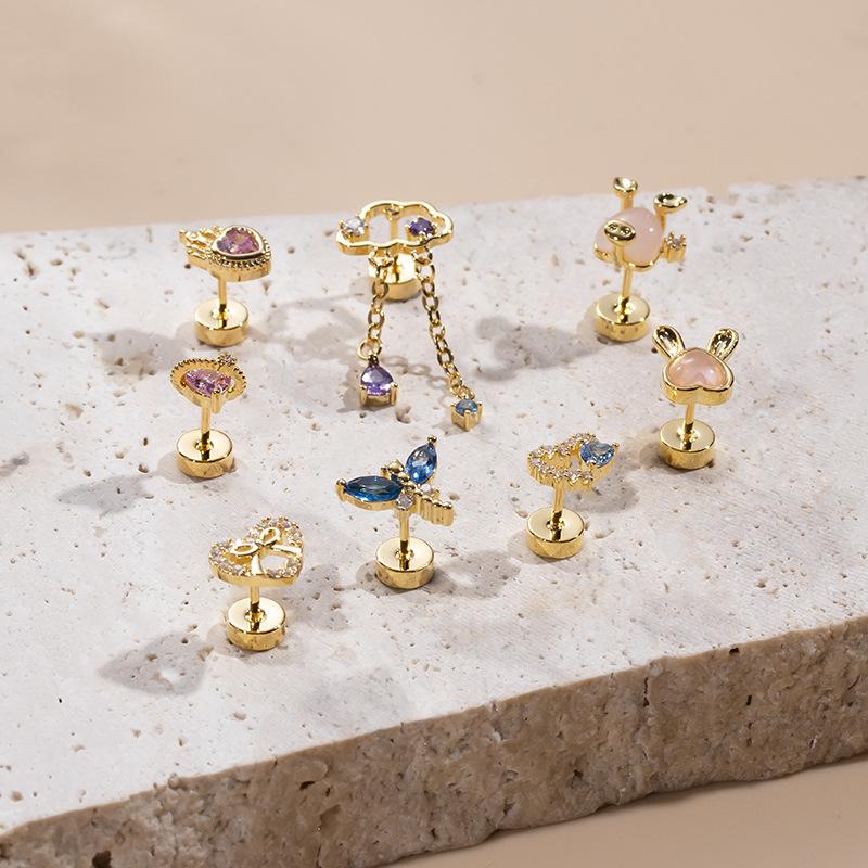 | nombre del producto | Nuevos aretes de moda para el hueso de la oreja, con circonita, lazo de amor, libélula, acero inoxidable, varilla delgada, cabeza única, redondos como pastel, de rosca |
