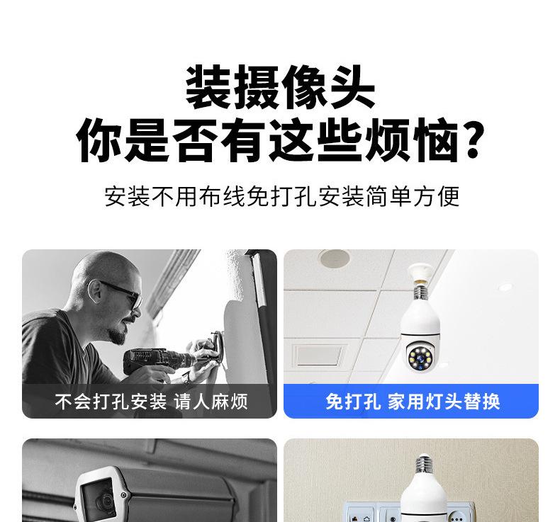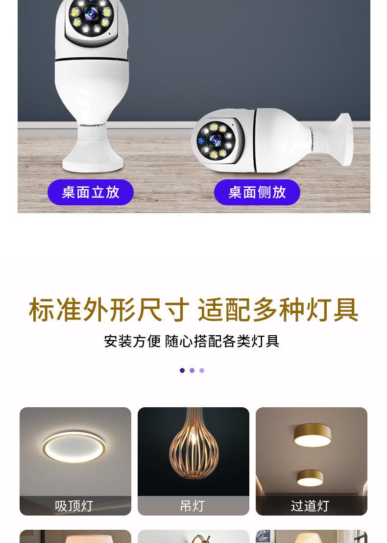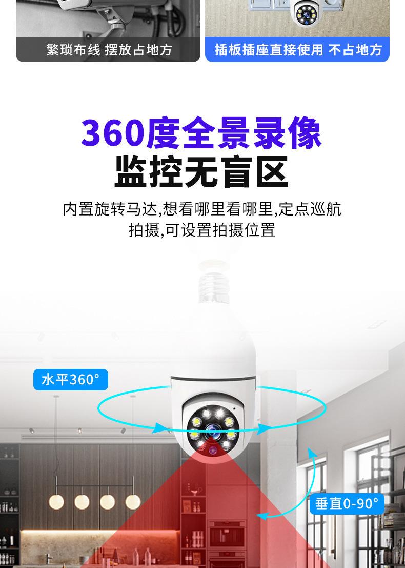 Cámara de Vigilancia HD Teléfono Móvil Inalámbrico Wifi 360 Grados Panorámica Cámara Inteligente Casquillo de Lámpara E27 Hogar Remoto