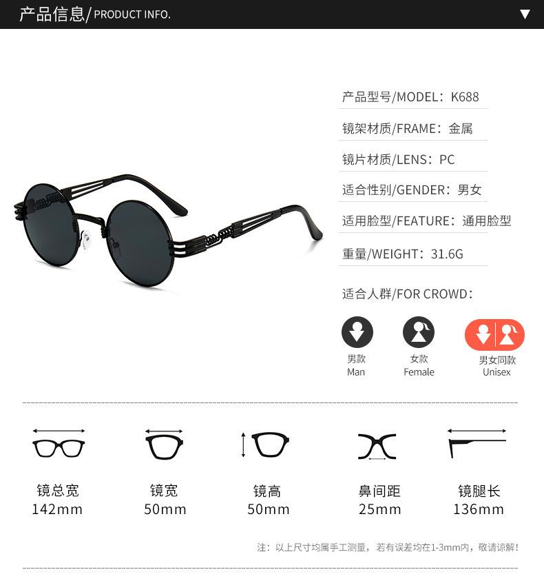 Gafas de sol polarizadas retro 8010 con montura redonda, estilo Prince, estilo steampunk, estilo Harajuku de heavy metal.