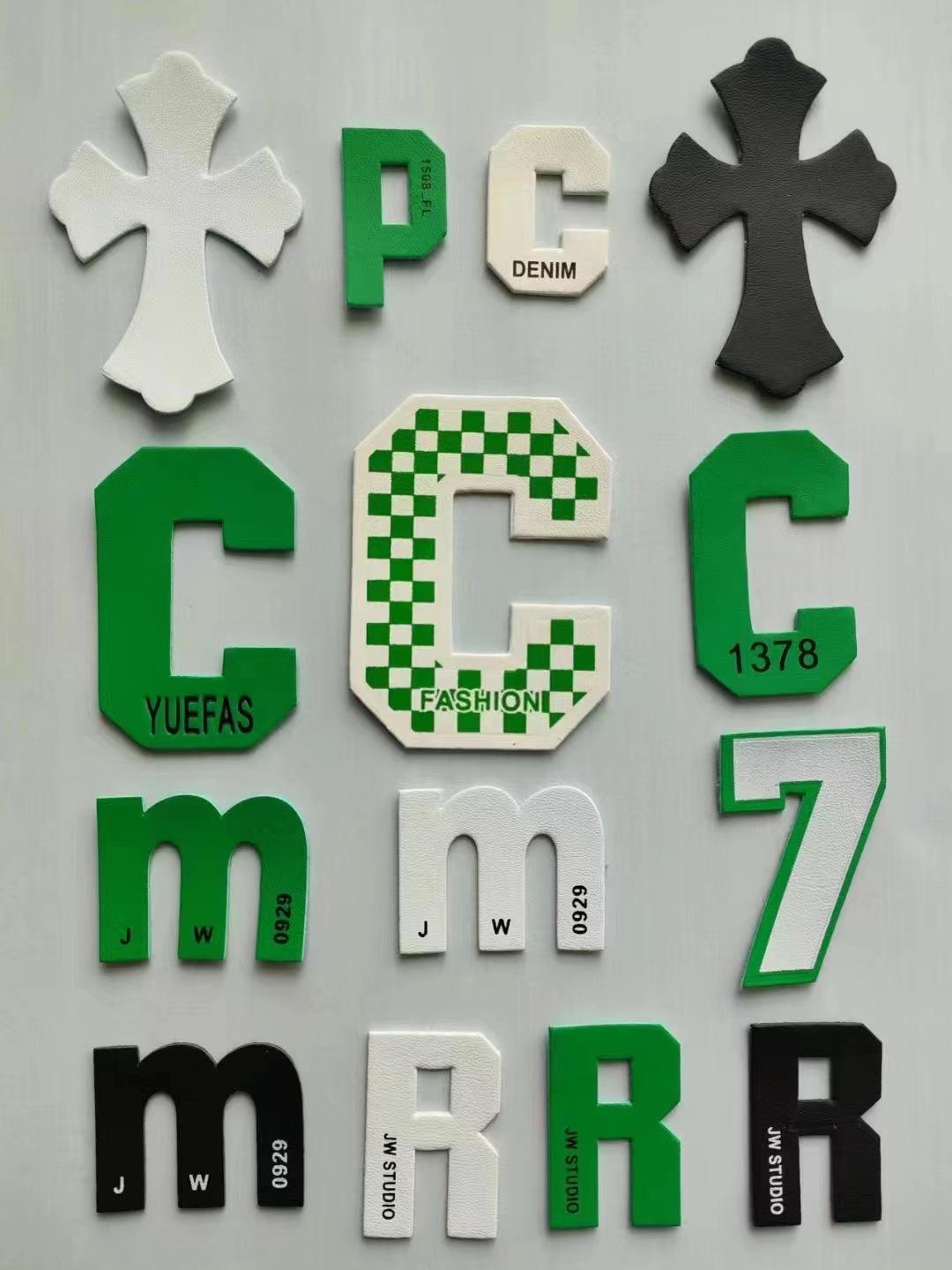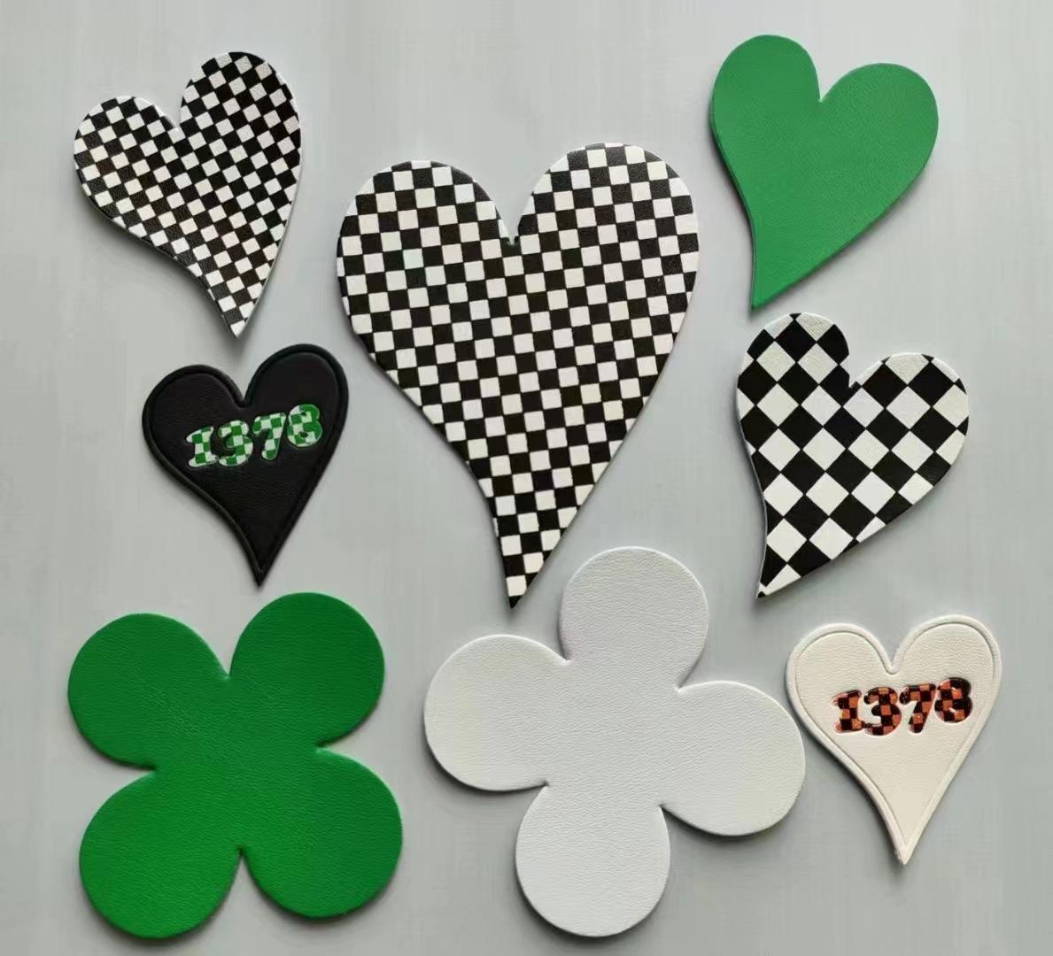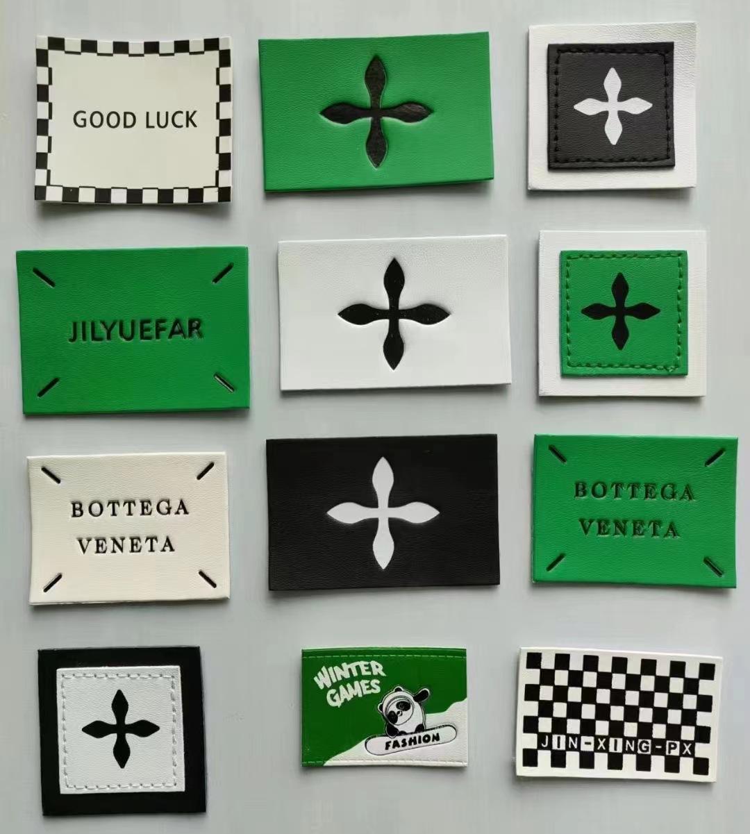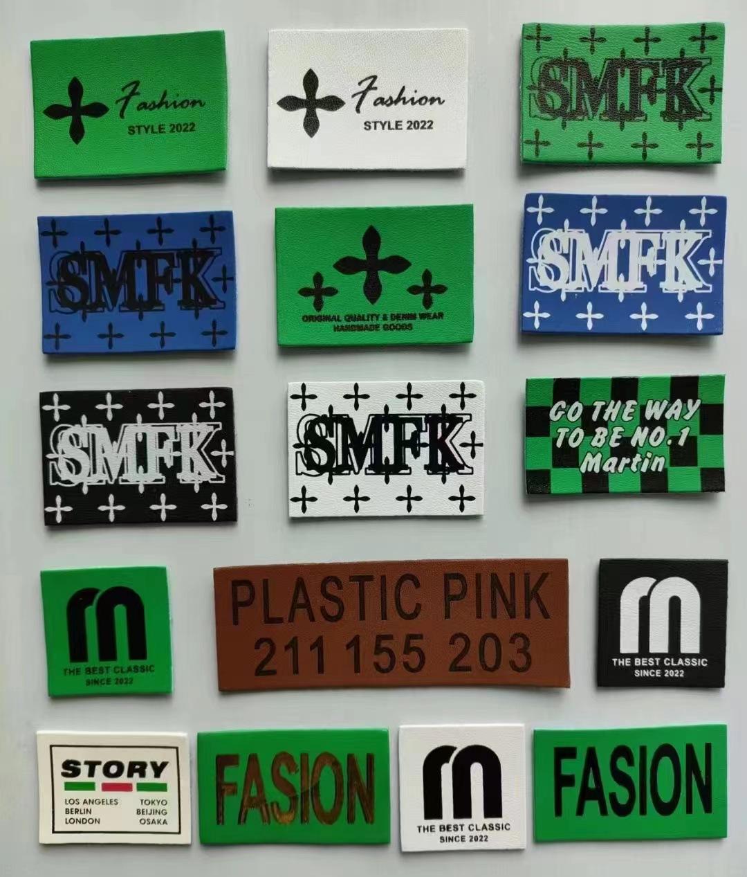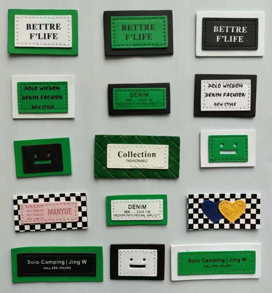 Nueva etiqueta de cuero fuente fabricante carta sello de cuero serigrafía repujado cuero PU ropa marca registrada etiqueta decorativa marca de cuero