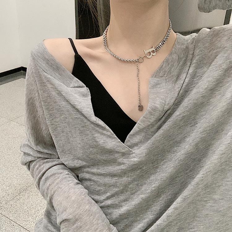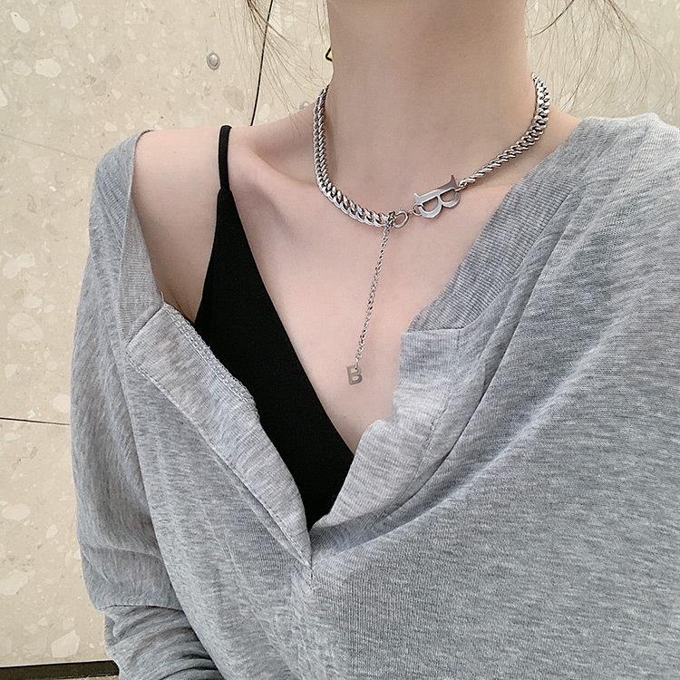 Collar de acero inoxidable con letra B versátil, estilo europeo y americano, popular en Internet, estilo frío, sencillo, elegante, cadena corta para clavícula para mujer.