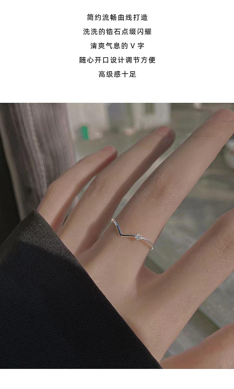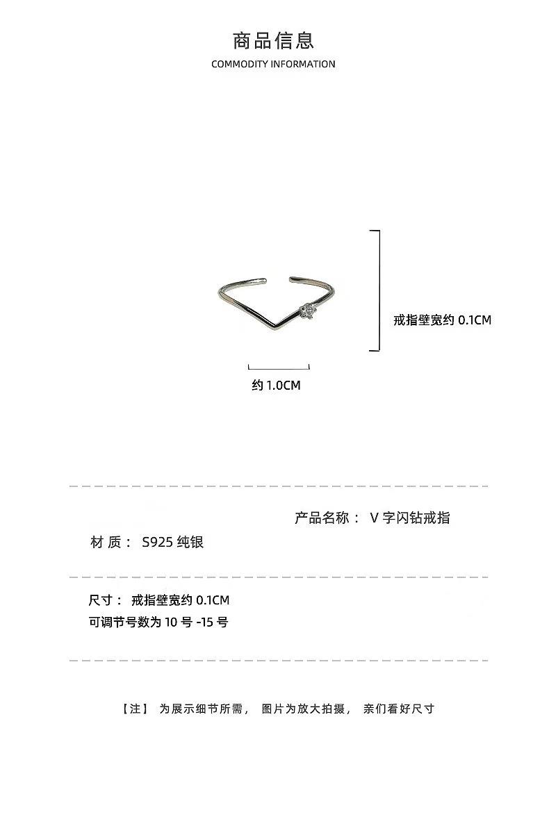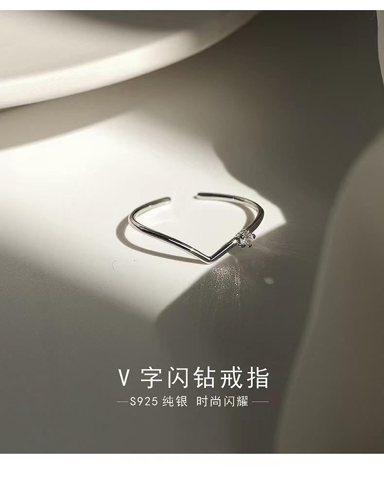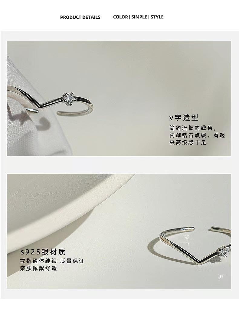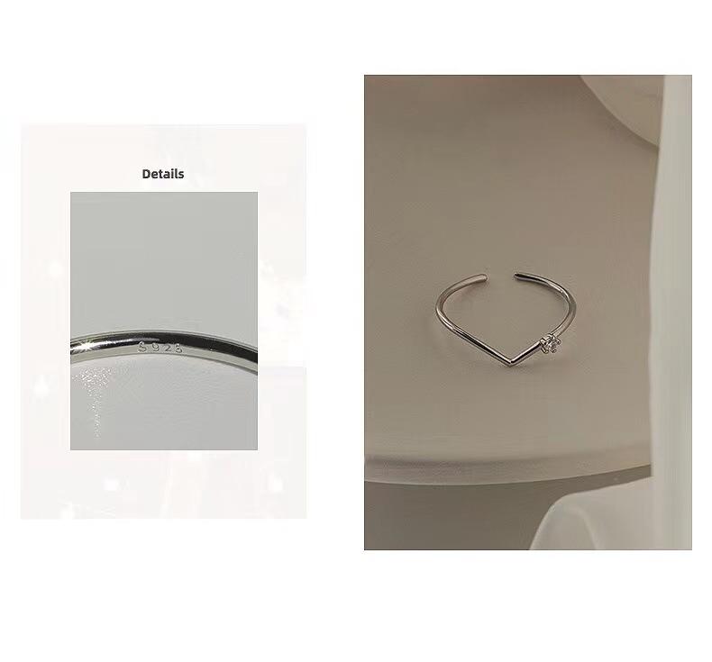 Anillo de plata de ley s925 con forma de V para mujer, moderno, personalizado, sencillo, abierto, ligero, de lujo, con diseño de nicho.