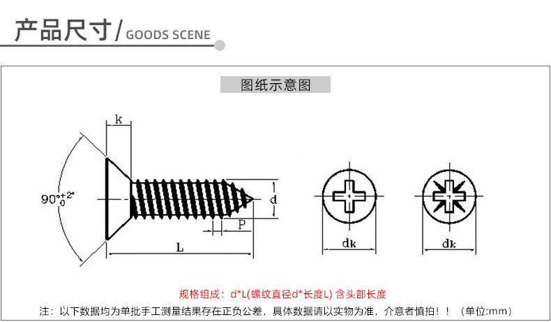 Tornillos autorroscantes hexagonales de cabeza avellanada de acero inoxidable 304 M2M2.3M2.6M3M4M5M6M8 |