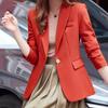 2024 Otoño Nuevo Chaqueta de Traje Pequeña Ajustada de Un Solo Botón para Mujer Texturizada Casual Albaricoque Traje Pequeño Mujer