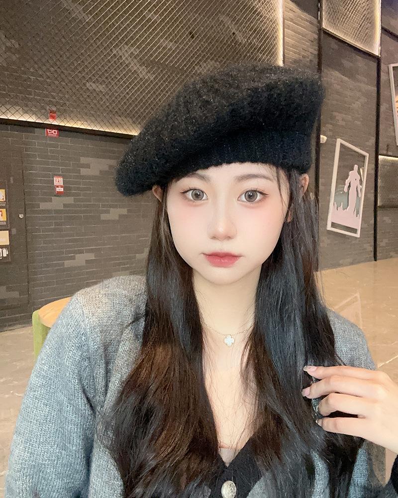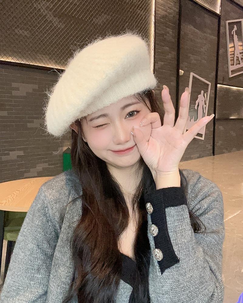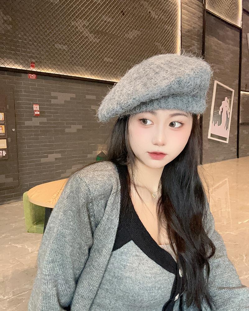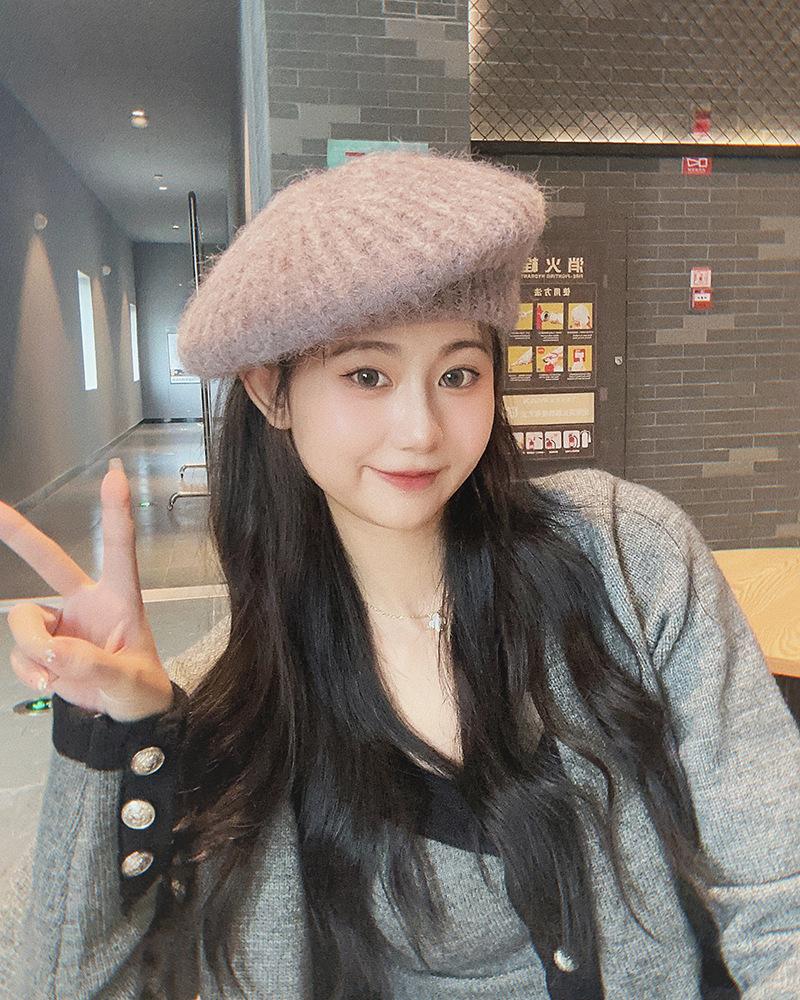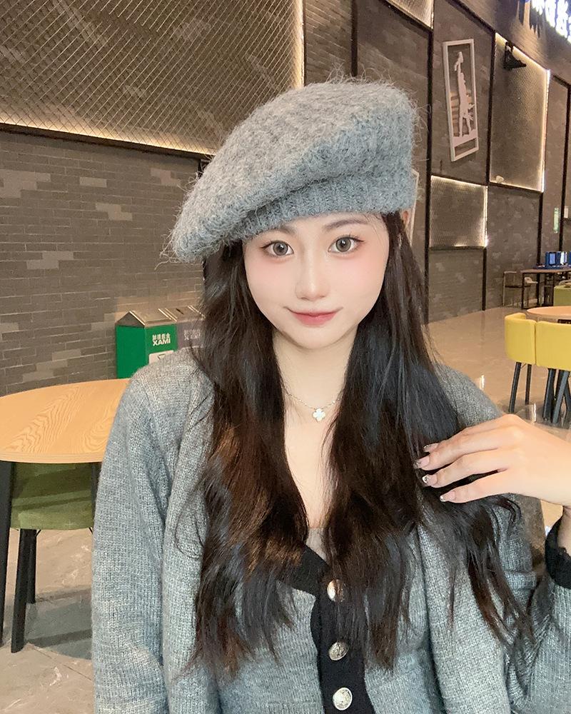 Sombrero Baiyi boina de lana sombrero de boina otoño e invierno Nueva boina sombrero de pintor circunferencia de cabeza grande boina versátil para mujer
