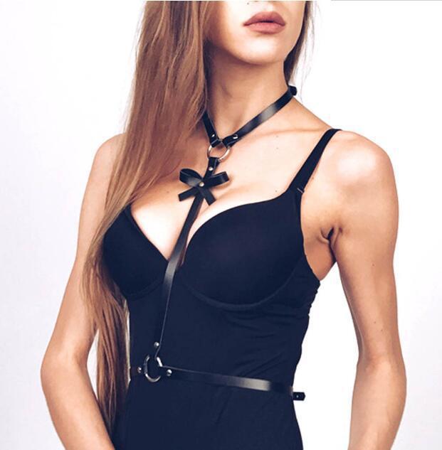 Explosiones Transfronterizas Europeas y Americanas Sexy Cuero Lazo Correa Cinturón Personalidad Collar Cinturón Integrado Cinturón para el Cuerpo