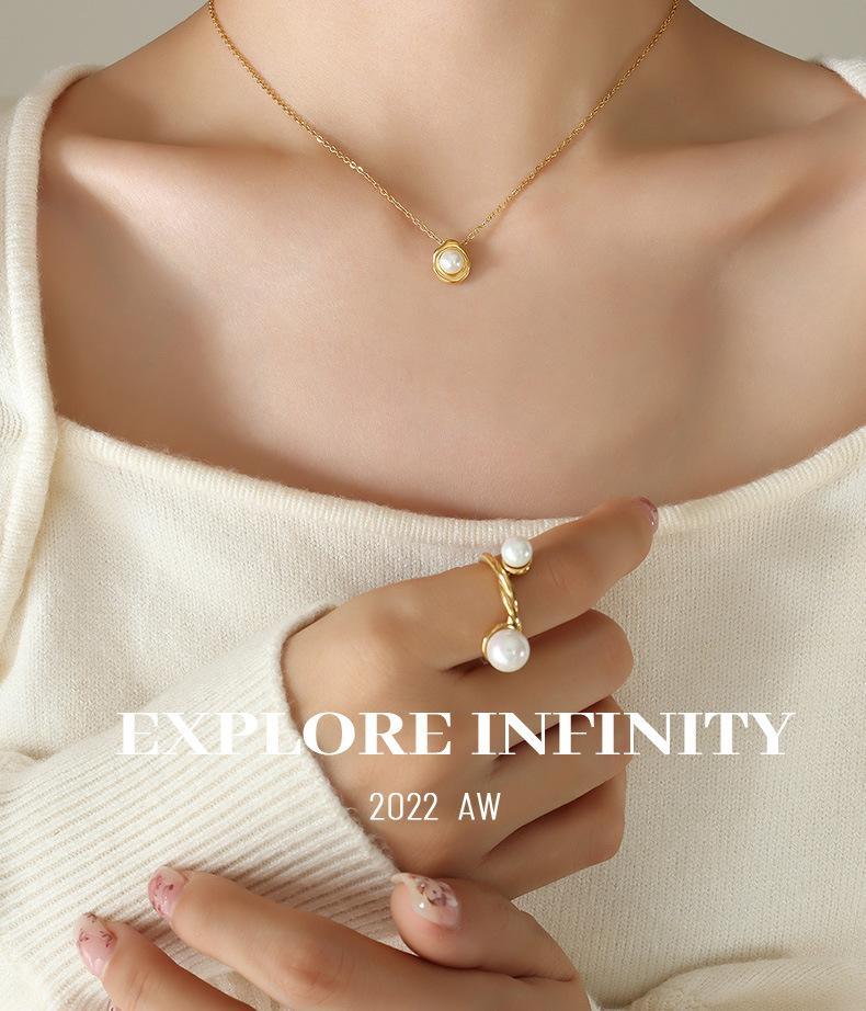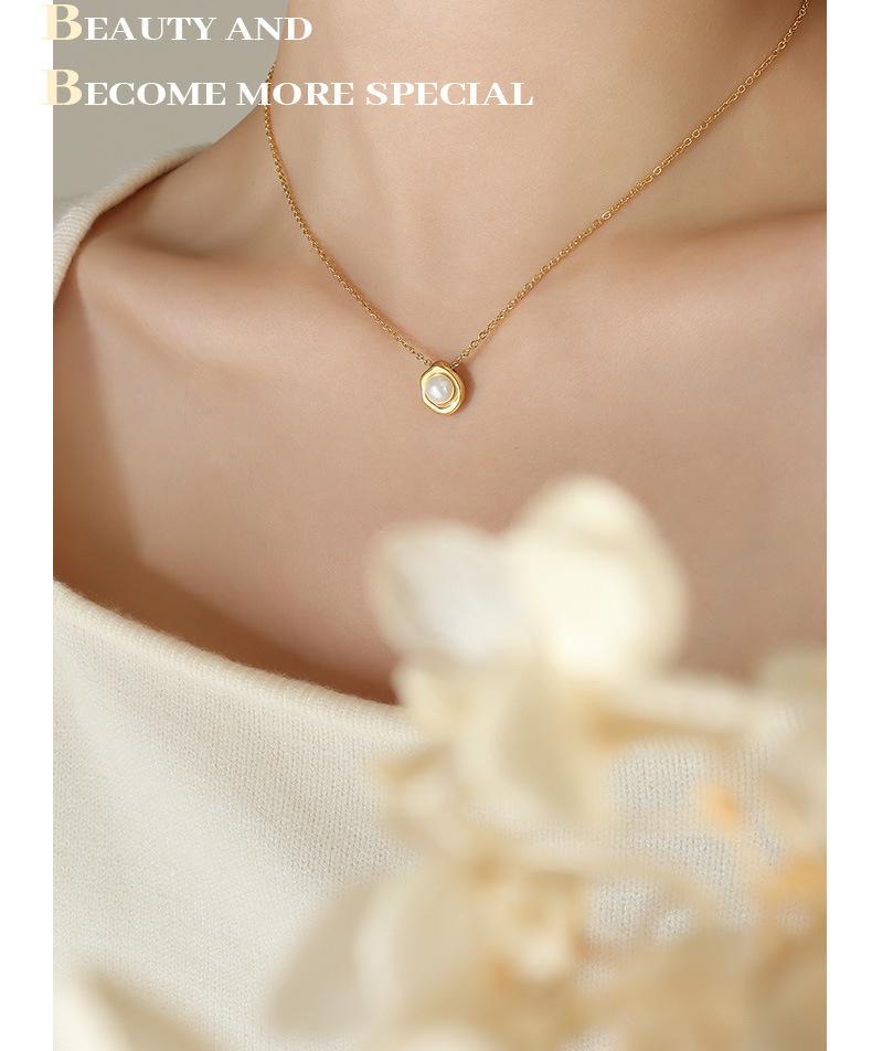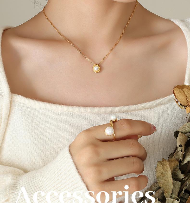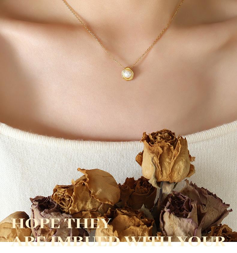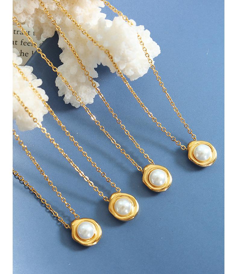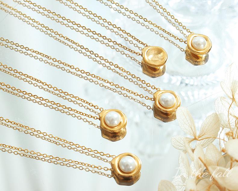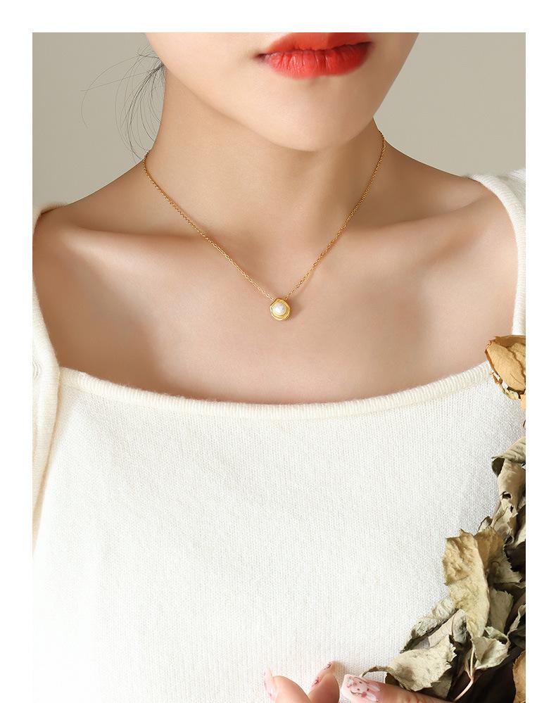 Collar con colgante de perla de imitación estilo barroco retro francés para mujer, cadena de clavícula ligera, joyería de lujo, acero de titanio