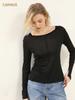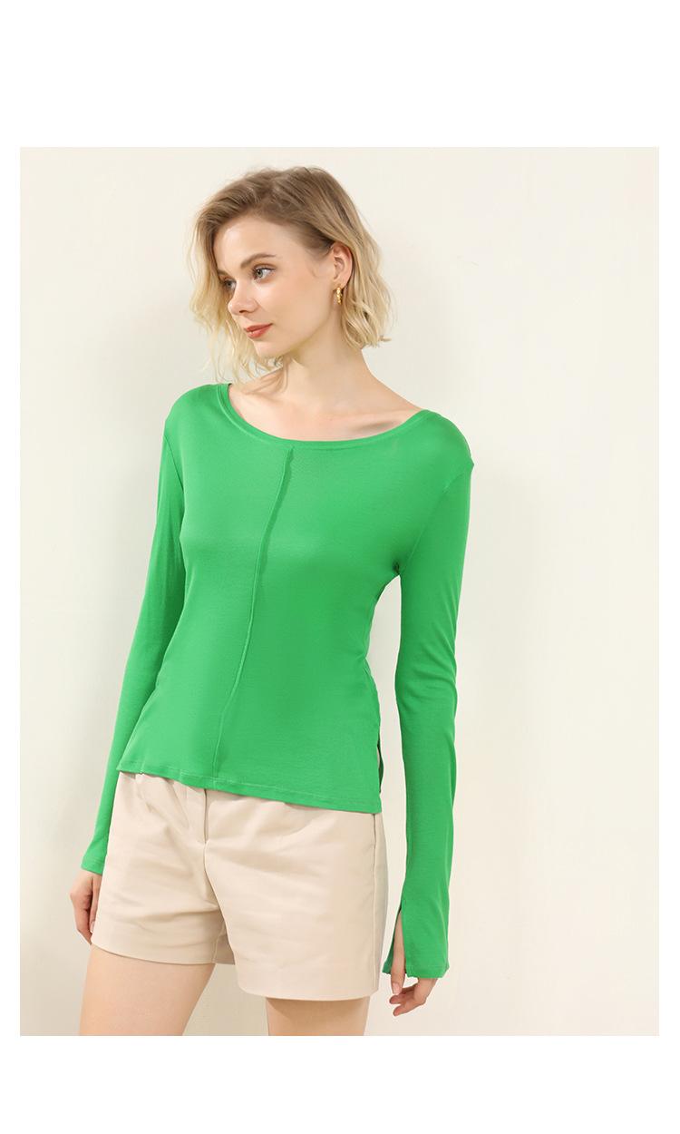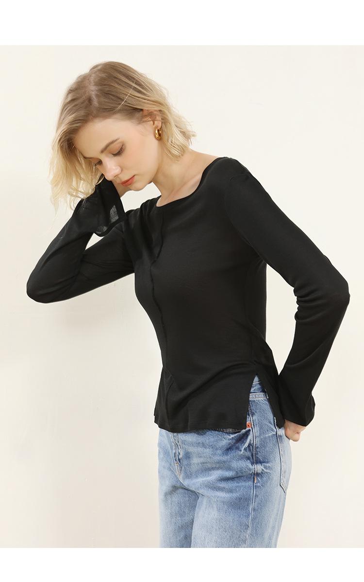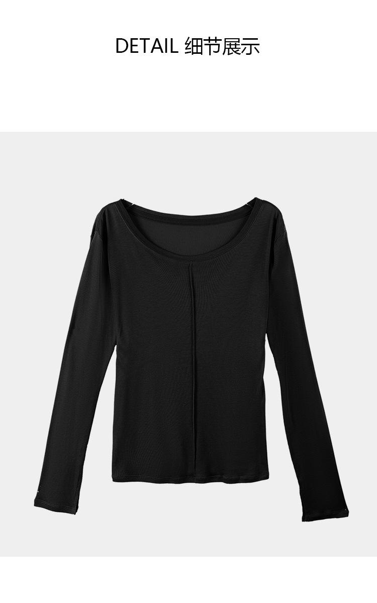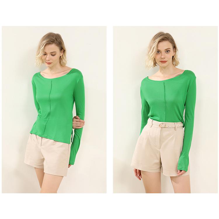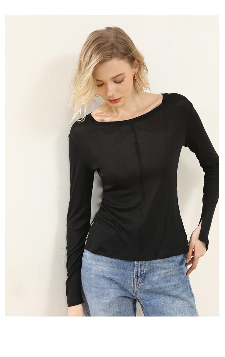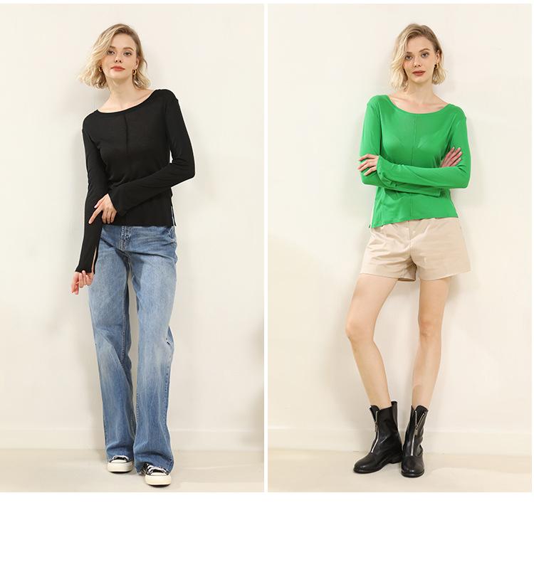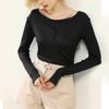 CANVAUS otoño nuevo para mujer camisa básica de fondo estilo coreano para mujer camiseta básica delgada con abertura cuello redondo manga larga top moda