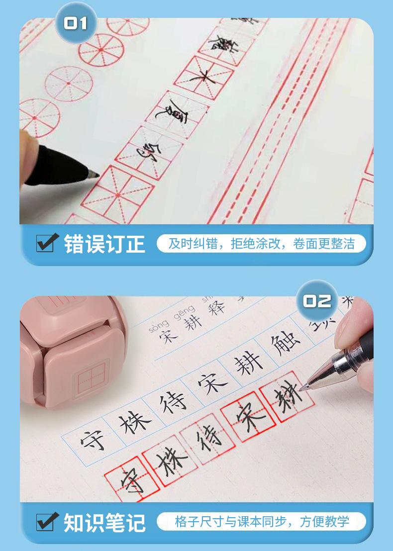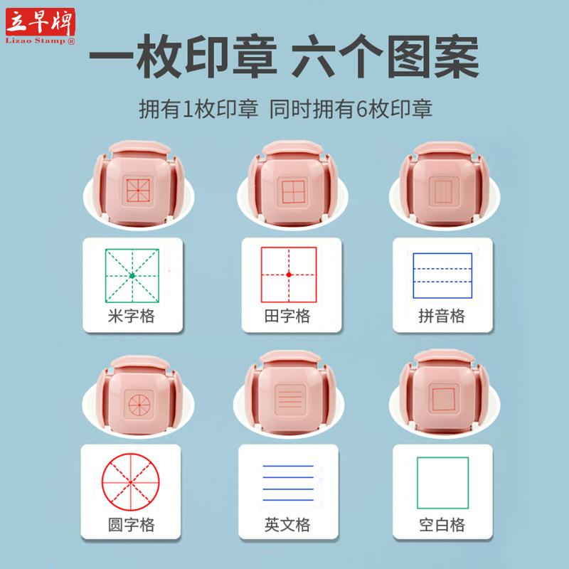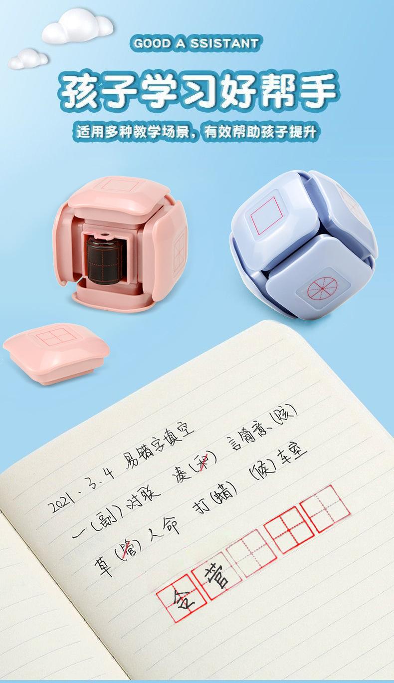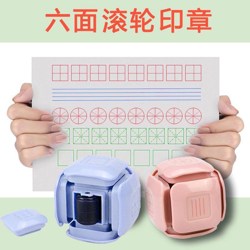 Tarea China de la Mañana Temprano Sello Rodillo de Cuadrícula Tianzi Pinyin de Seis Lados Papelería para Estudiantes Sello de Corrección para Calificación de Maestros