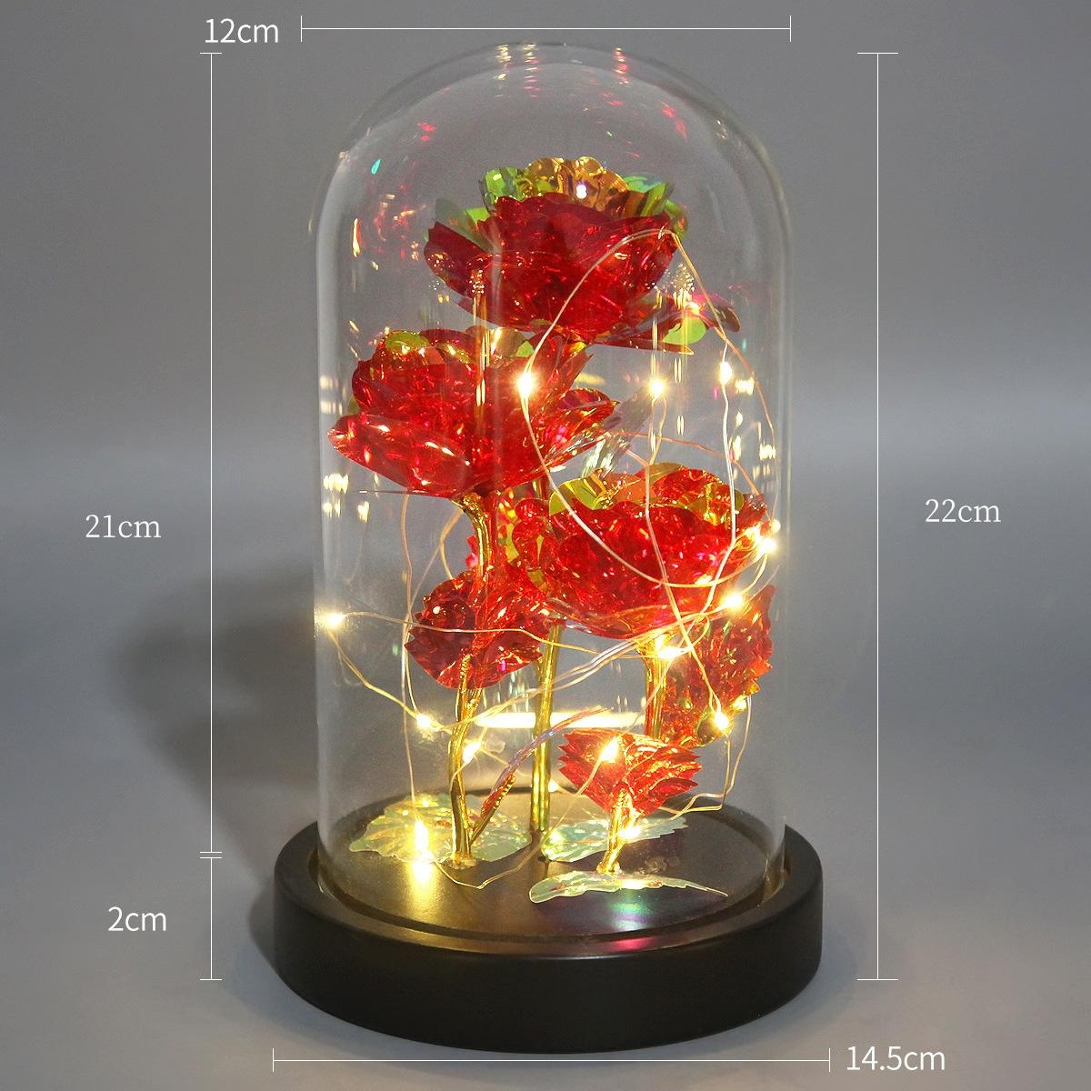 Productos de Fábrica 24K 3 Cabezas Flor de Lámina de Oro Colorida Cubierta de Cristal Lámpara LED de Rosa Adornos Regalo de San Valentín Listo para la Venta