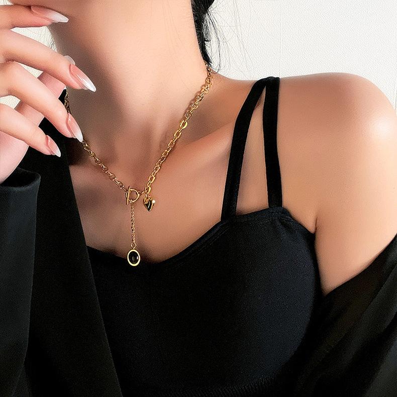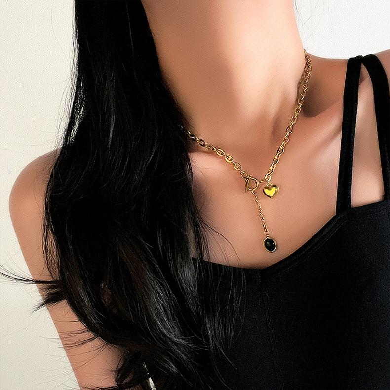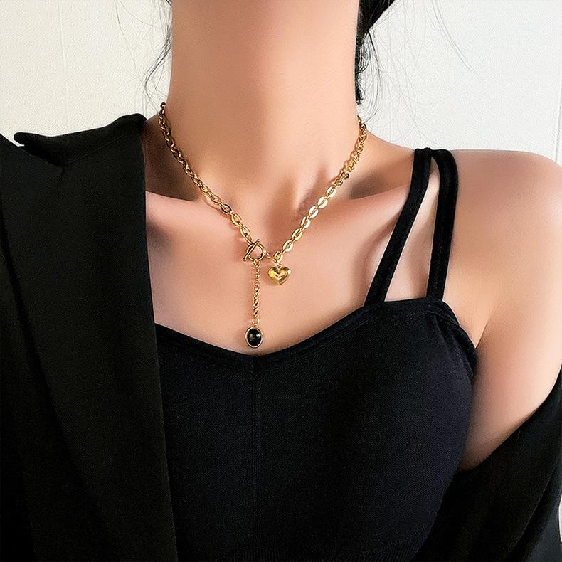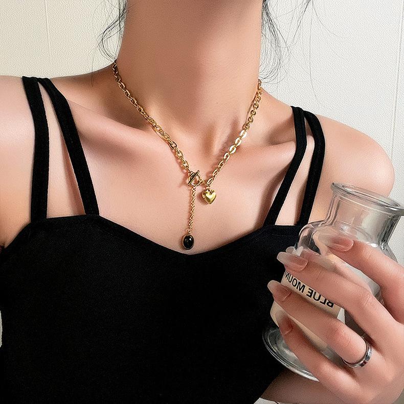 Collar de Amor de Cadena Gruesa Estilo Hip-hop para Mujer Cadena Corta para Suéter Temperamento Simple Cadena para Clavícula Acero de Titanio Joyería de Diseño Nicho