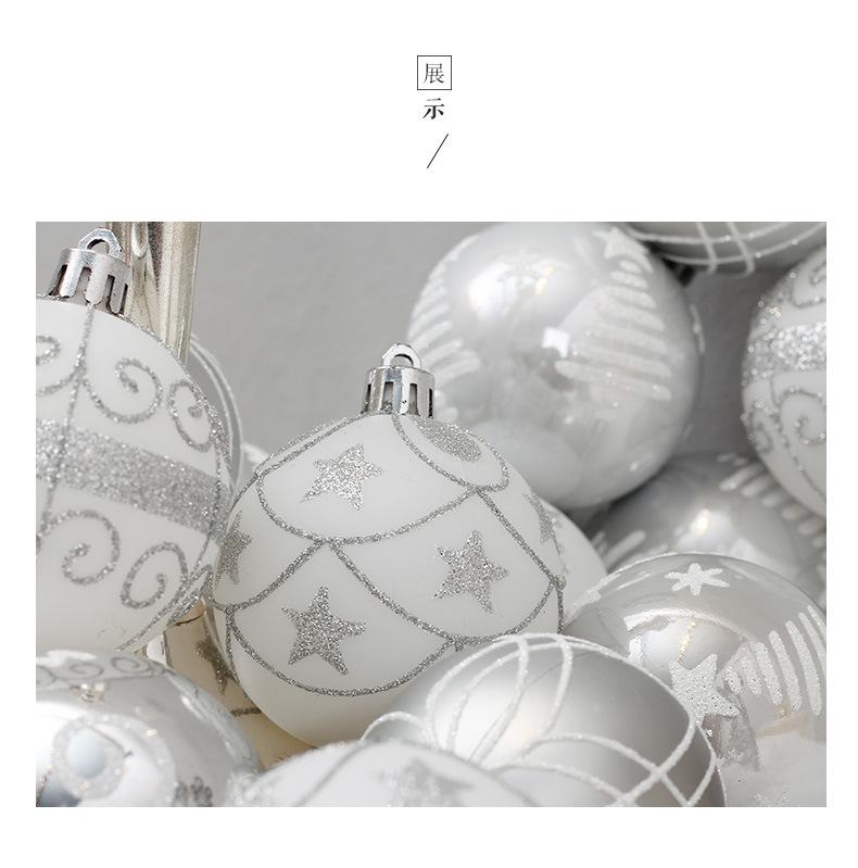 Suministros de decoración navideña, juego de bolas pintadas de plata de 6 cm/24, colgante de árbol de Navidad, bola decorativa