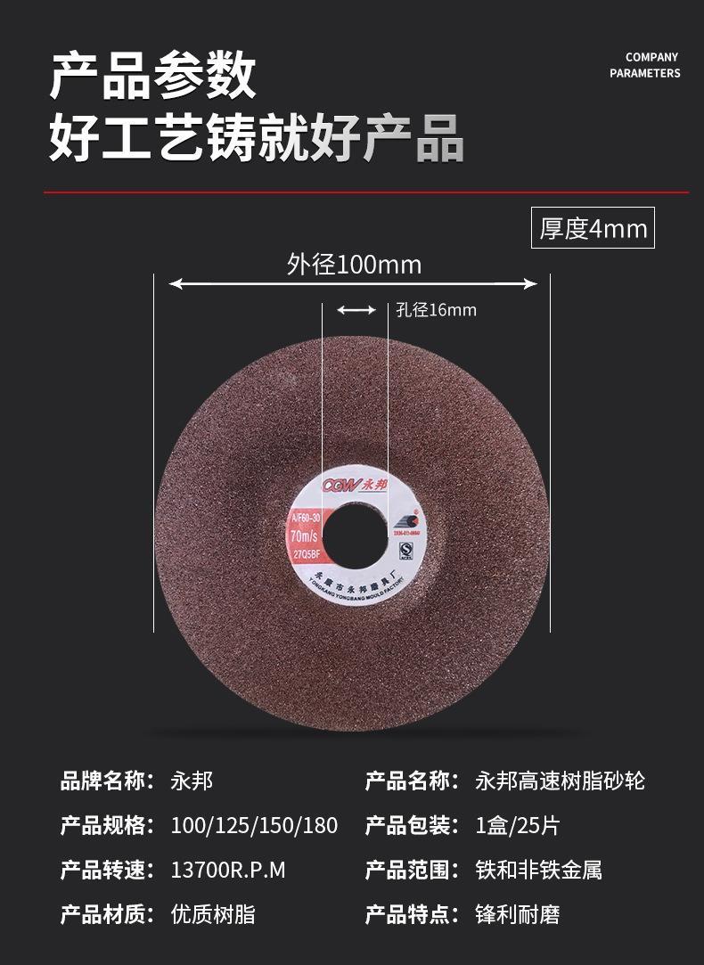 Suministro directo de fábrica de muela abrasiva de resina de alta velocidad Yongbang 100, rebaba de incisión, placa de pulido de acero inoxidable de metal