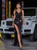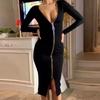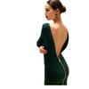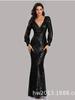 Vestido de fiesta de una generación de estilo europeo y americano con escote en V profundo, cremallera y espalda descubierta, de manga larga y comercio exterior transfronterizo para mujer.