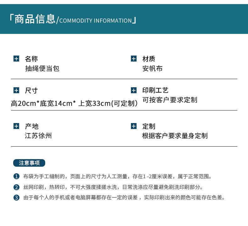 Xuzhou Wu Qingkong Fabric Co., Ltd. es una empresa especializada en la producción y procesamiento de bolsas de lona, bolsas de tela, monederos, bolsas para loncheras, bolsos de hombro y otros productos. Cuenta con un sistema de gestión de calidad completo y científico. La empresa siempre ha tomado el servicio profesional y la satisfacción del cliente como su propósito comercial, y la filosofía empresarial de buscar la benevolencia primero, buscar el beneficio primero y servir verdaderamente a la gente. Es pionera, pragmática e innovadora. Sobre la base de hacer un buen trabajo en los negocios, también tiene como objetivo construir una marca local. Hágalo por usted mismo. En muchos años de operación, nos hemos adherido a los principios comerciales de cultivar empleados de alta calidad, optimizar constantemente la tecnología de producción y utilizar la calidad y el servicio para que los clientes regresen; hemos implementado la estrategia comercial de calidad primero, procesamiento rápido y depender de las capacidades profesionales para obtener rendimientos justos. Adherirse a ventas rápidas y precios razonables, y exigir que el personal de ventas tenga contacto de corazón a corazón y comunicación cara a cara con los clientes. Al mismo tiempo, la empresa se adhiere a operaciones estandarizadas, no persigue altos márgenes de beneficio, se adhiere al límite inferior del valor, rechaza la tentación de los intereses e insiste en obtener rendimientos justos del mercado con capacidades profesionales, lo cual es la piedra angular del éxito. Amigos de todos los ámbitos de la vida son bienvenidos a visitar, brindar orientación y negociar negocios.