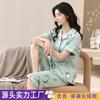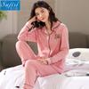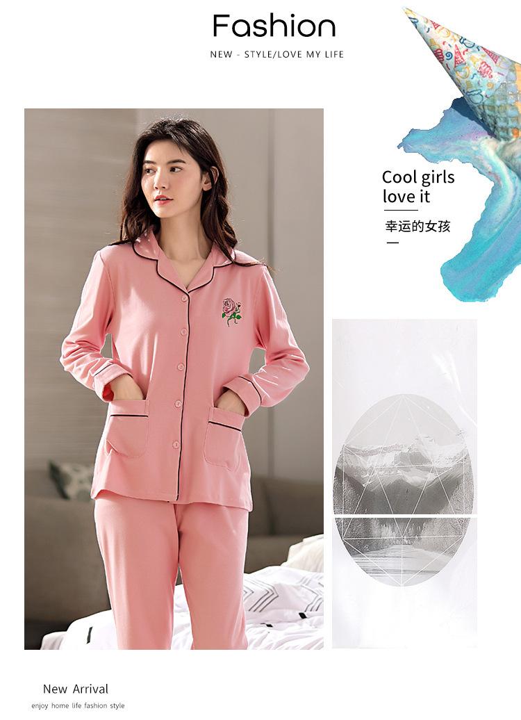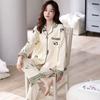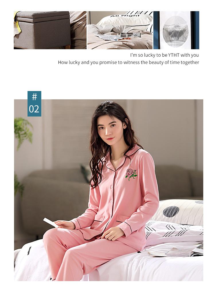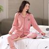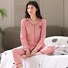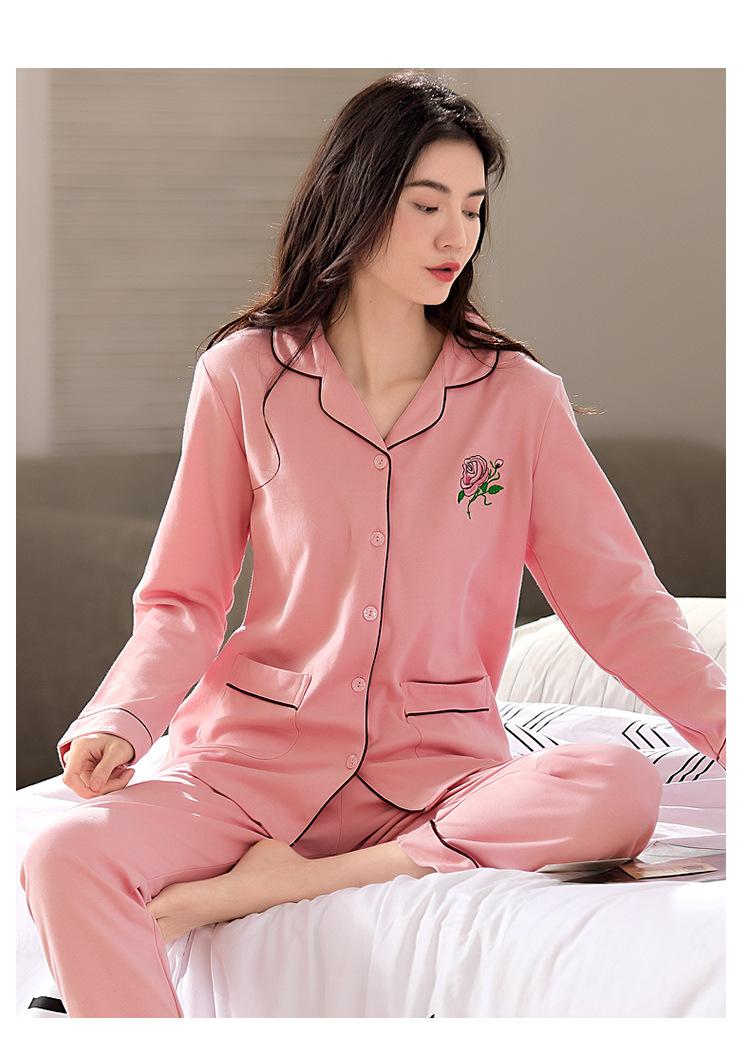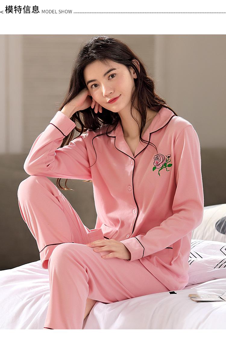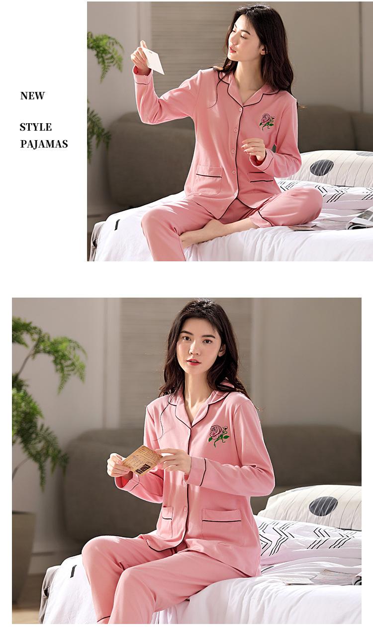 Pijamas de Algodón Puro para Mujer Primavera y Otoño Cárdigan Solapa Simple Color Puro Suelto Talla Grande Algodón Ropa para el Hogar Se Puede Usar Fuera del Traje