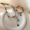 Collar de cuentas hecho a mano con etiqueta de la fortuna geométrica chapada en oro y acero de titanio vintage de estilo antiguo, cuentas de ábaco naturales, joyería
