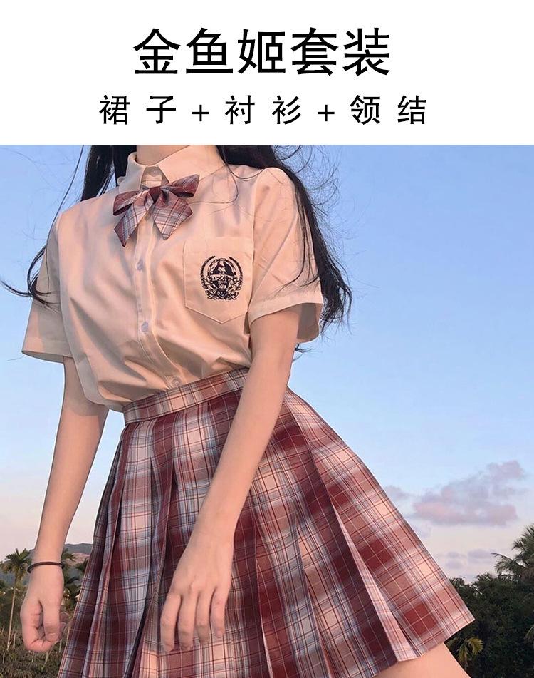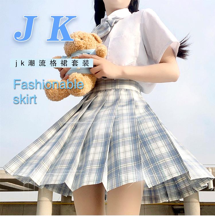 Falda de Uniforme Jk Primavera y Otoño Manga Corta Falda Escocesa Set de Corbata Juego Completo Estilo Japonés Estilo Preppy Estudiantes