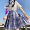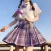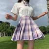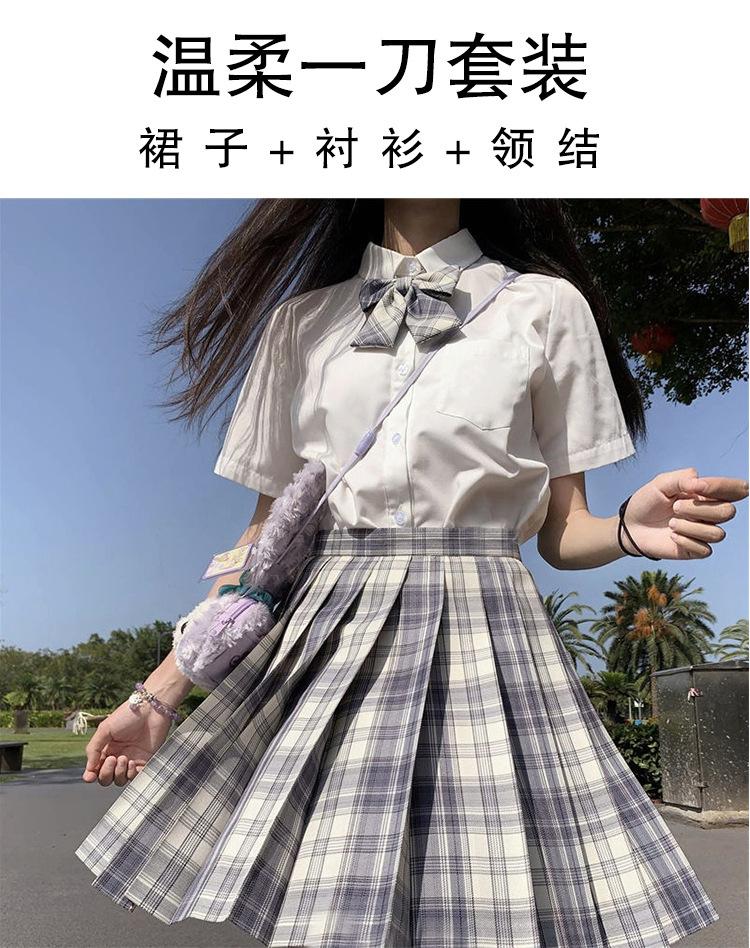Grape Soda (plaid skirt + pure white short sleeve + bow tie)