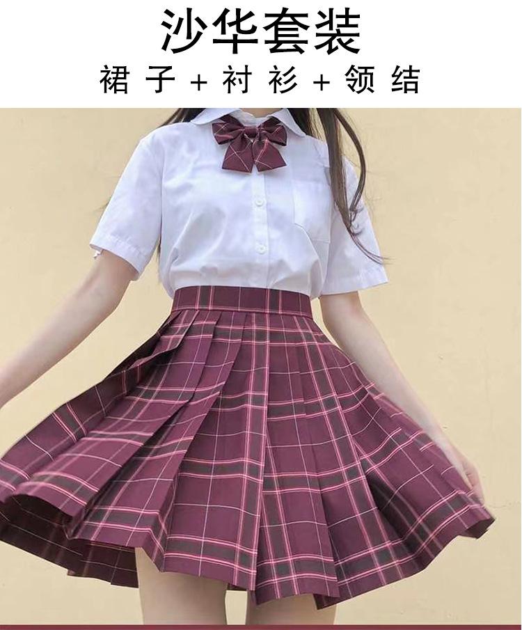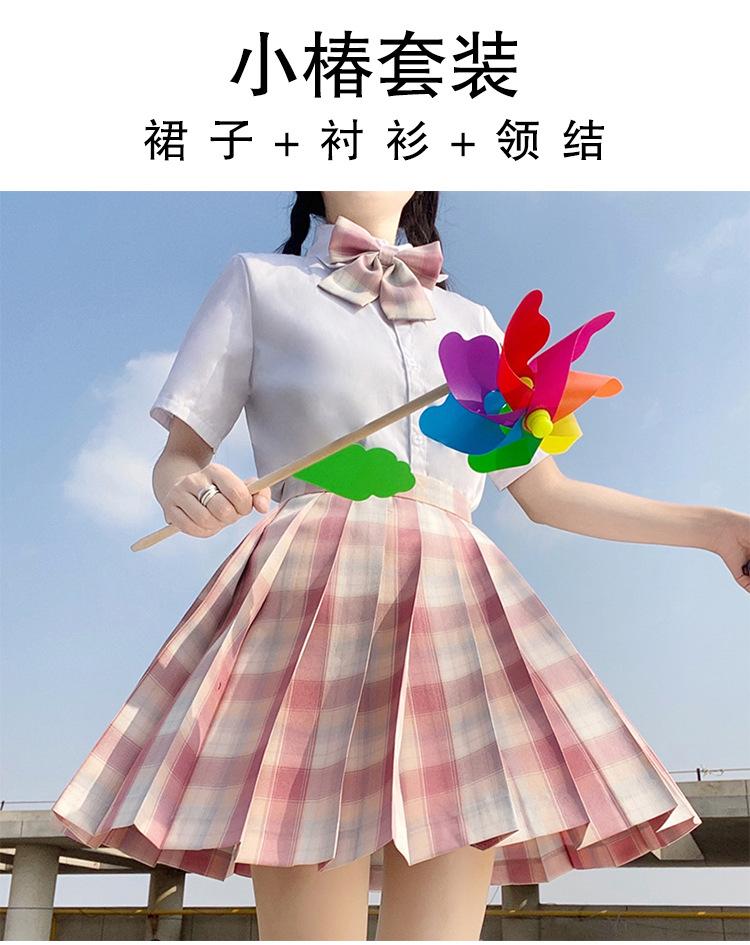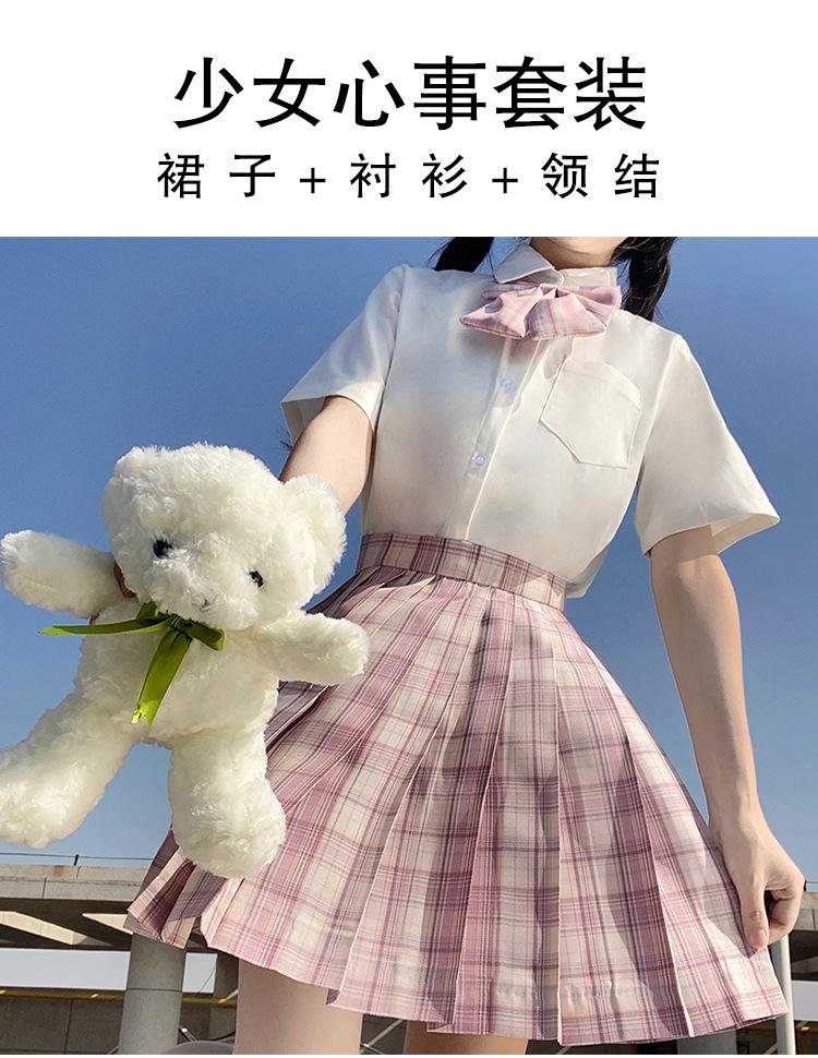 Raspberry black tea (plaid skirt + pure white short sleeve + bow tie)