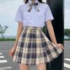 Island Island (plaid skirt + pure white short sleeve + bow tie)