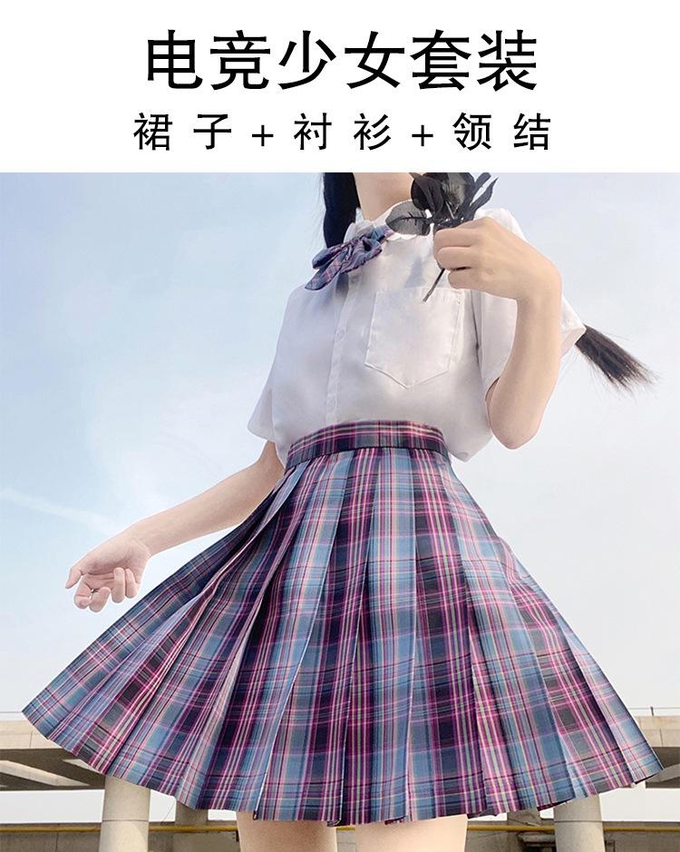E-sports girl (plaid skirt + pure white short sleeve + bow tie)