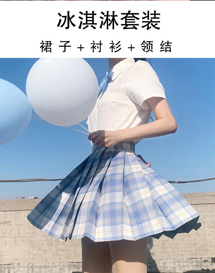 Ice cream (plaid skirt + pure white short sleeve + bow tie)