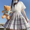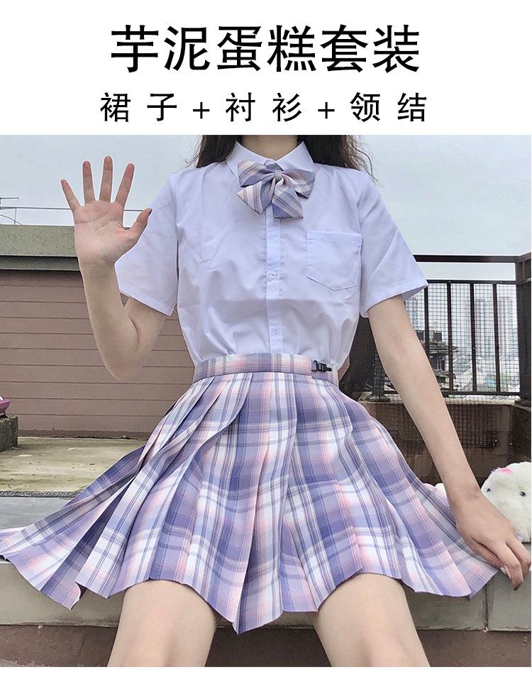 Taro cake (plaid skirt + pure white short sleeve + bow tie)