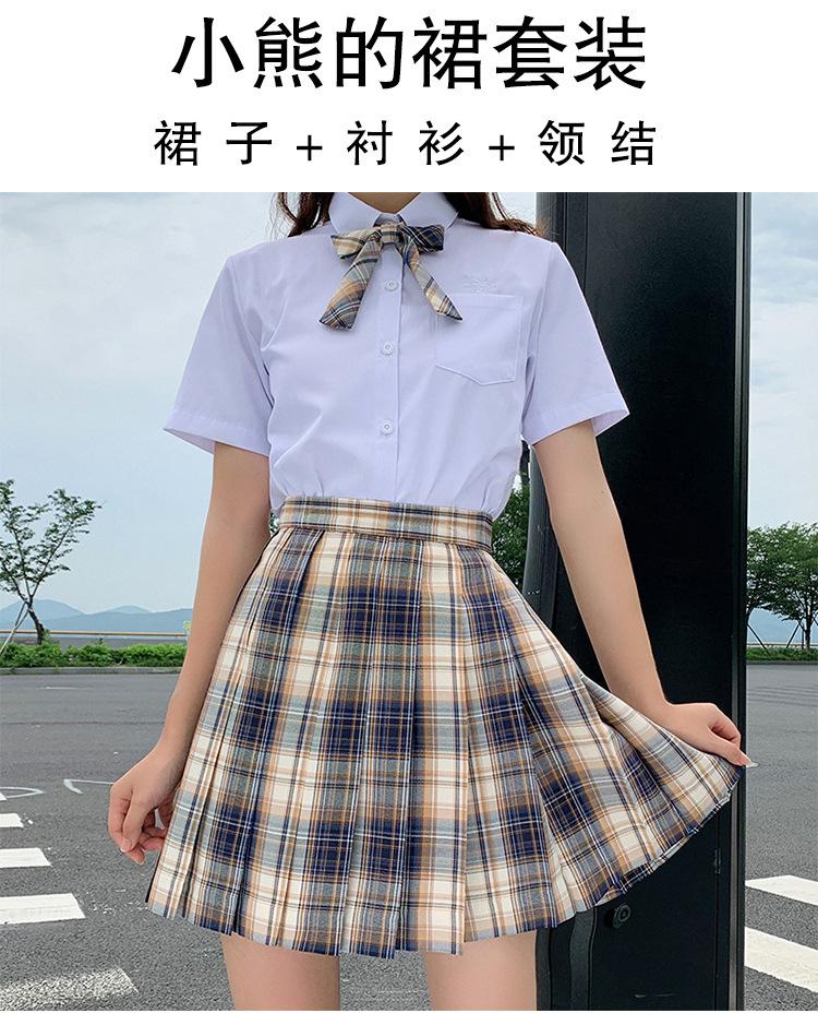 Little Bear skirt (plaid skirt + pure white short sleeve + bow tie)