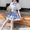 Glass sugar (plaid skirt + embroidered short sleeve + bow tie)