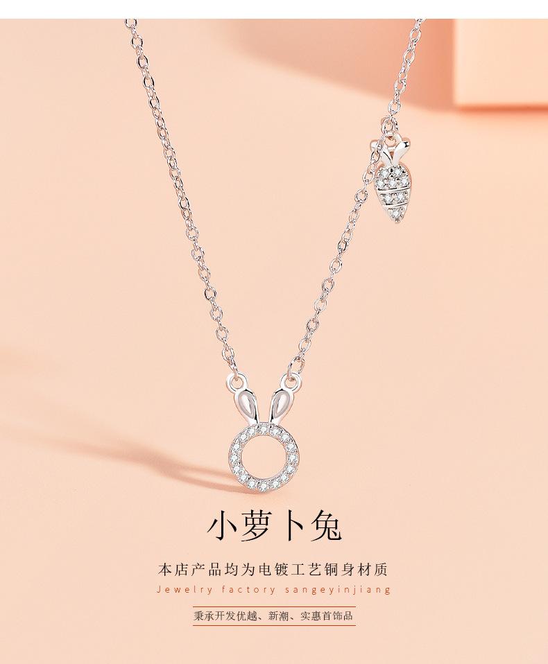 Nuevo Nuevo Lindo Collar de Conejo Zanahoria Conejo Lindo Simple Drama Coreano Versátil Elegante Cadena Clavícula Diamante con Cadena
