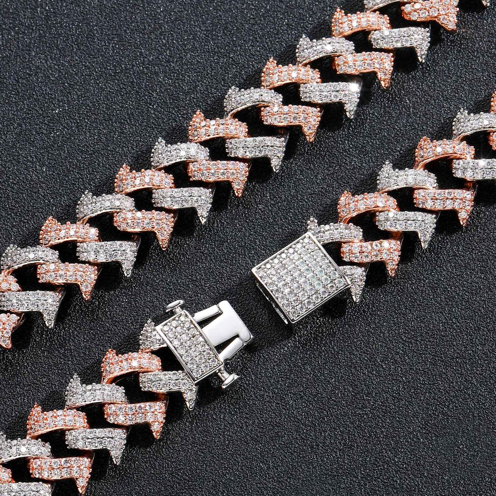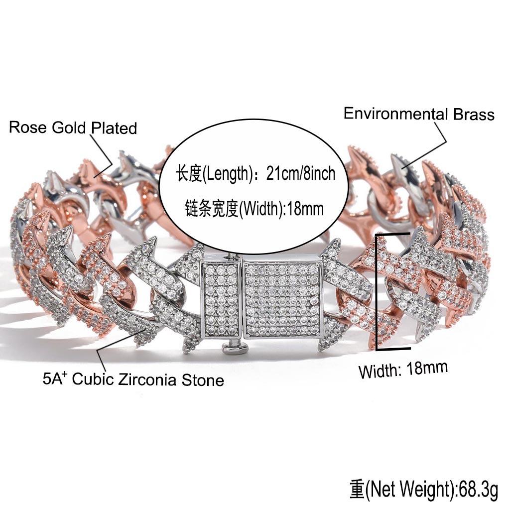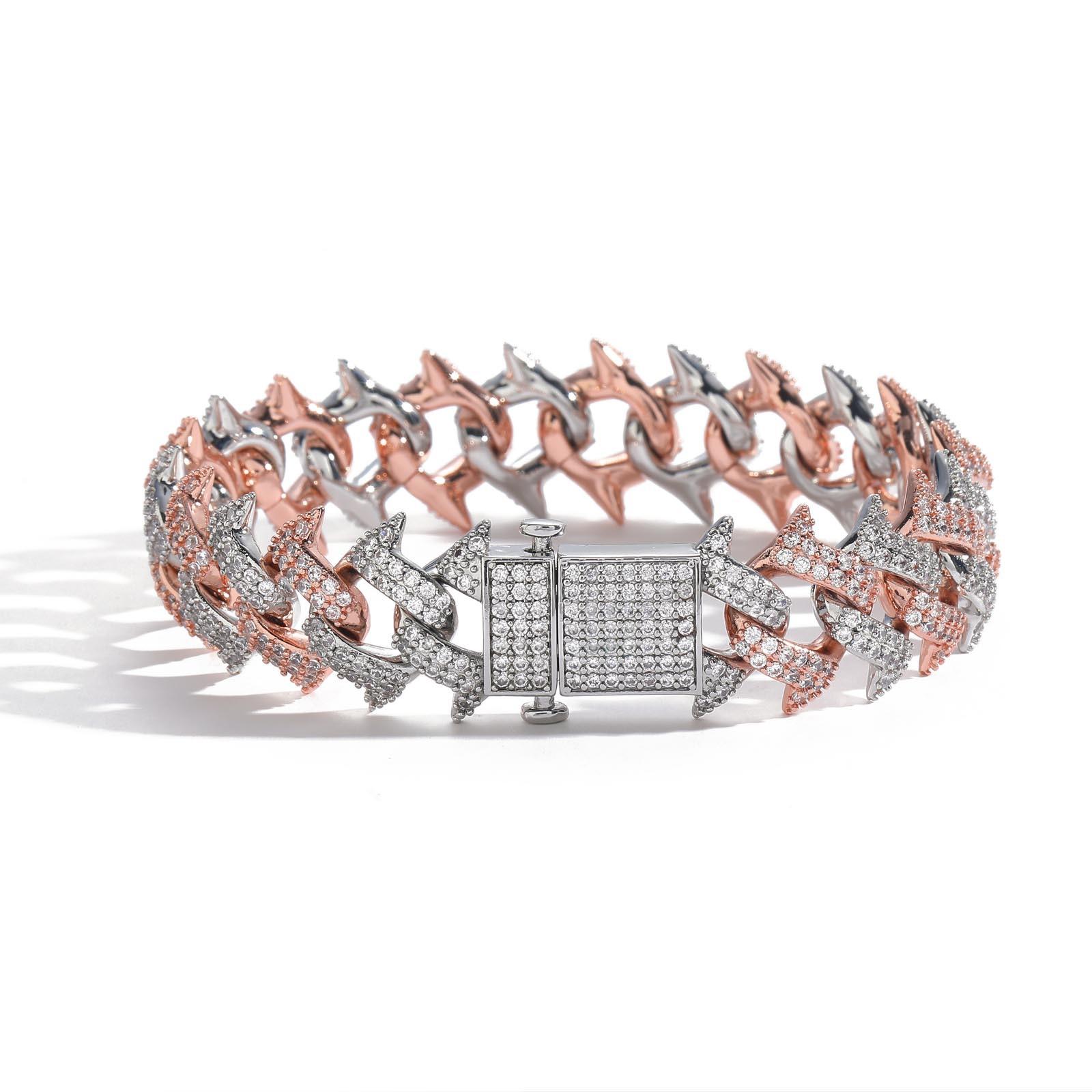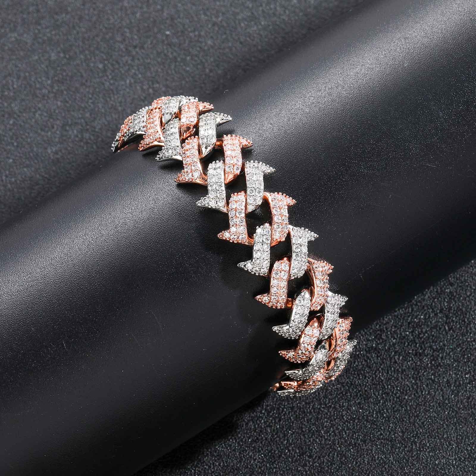 Pulsera de cadena cubana de espinas con circonitas rosas y blancas de 18 mm de hip hop europeo y americano, hebilla de resorte, pulsera de hip hop de personalidad para hombre